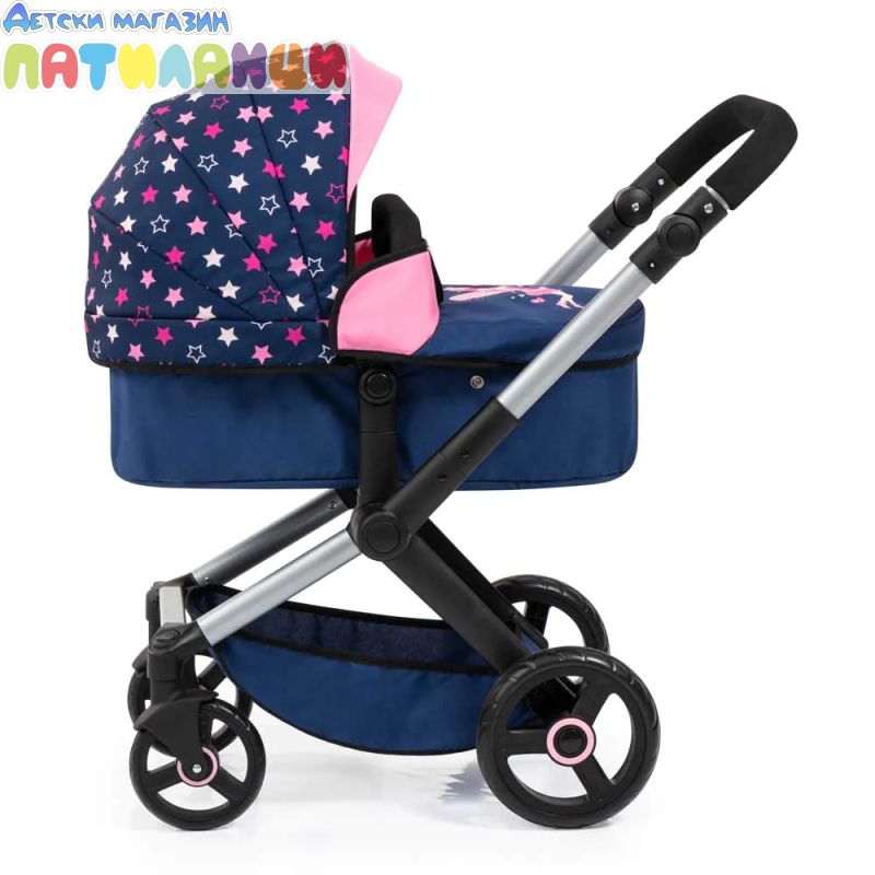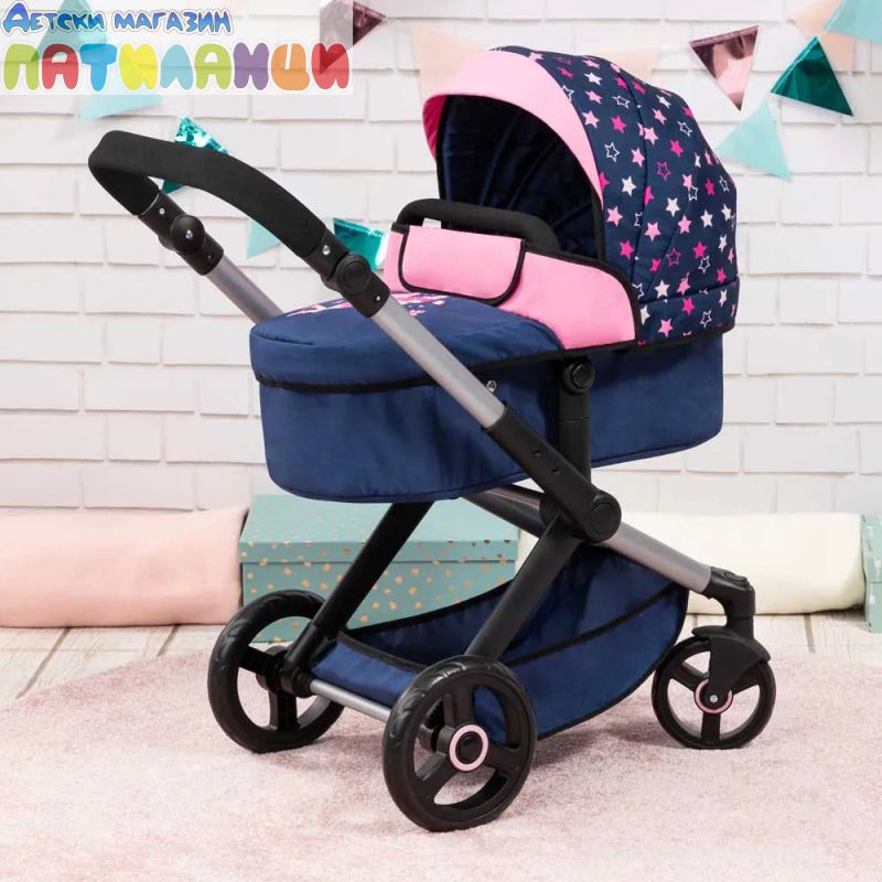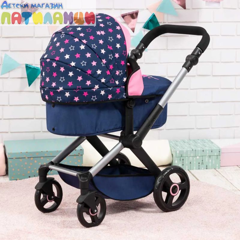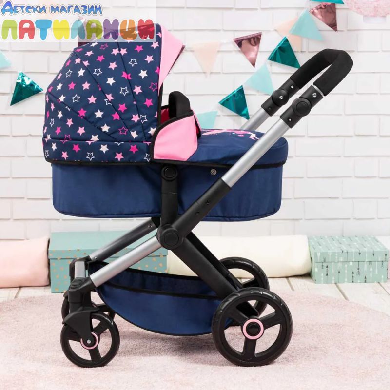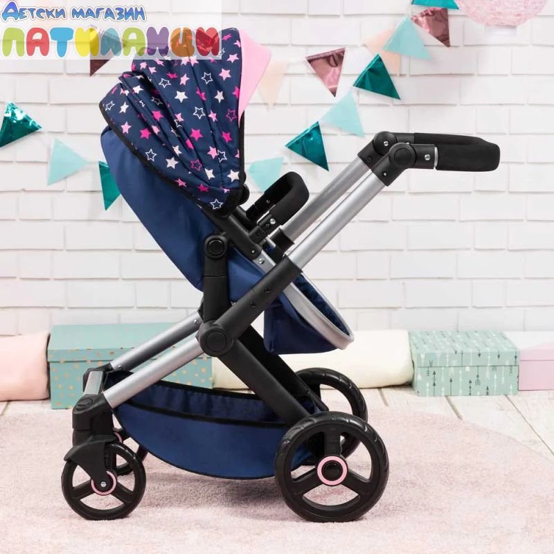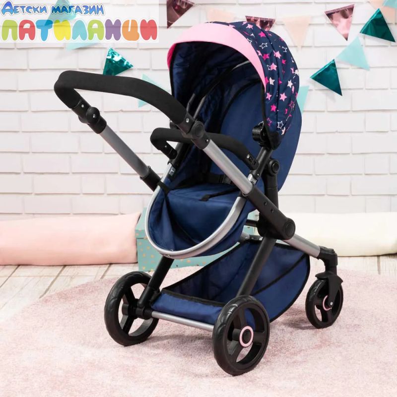 С включена чанта за аксесоари и регулируема дръжка, количката предлага комфорт и стил по време на игра.