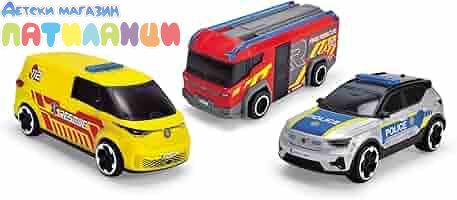 С комплекта SOS автомобили от Dickie Toys малките герои могат да се впуснат в напрегнати спасителни мисии, точно като истински полицаи, пожарникари и медици. Комплектът включва 3 висококачествени метални колички, перфектни за детски ръчички. Количките се задвижват чрез функция със свободно въртене на колелата, което ги прави лесни за бутане и управление. Издръжливата конструкция и детайлната изработка гарантират дълги часове активна и креативна игра, както у дома, така и навън. Този комплект е идеален за ролеви игри и въображаеми спасителни мисии, като подпомага развитието на моторика, социални умения и чувство за отговорност. Независимо дали е подарък за рожден ден или допълнение към вече съществуваща колекция, Dickie SOS комплектът носи реалистични приключения и много забавление!