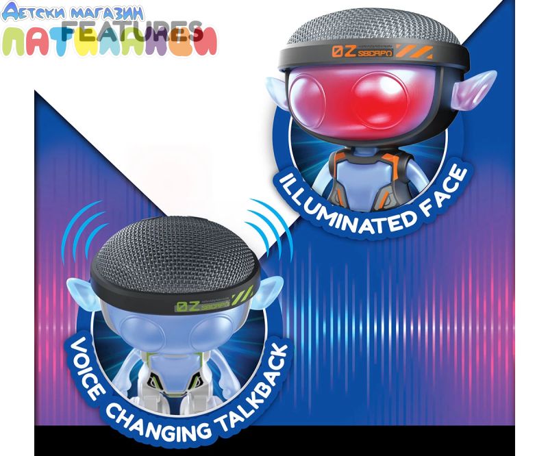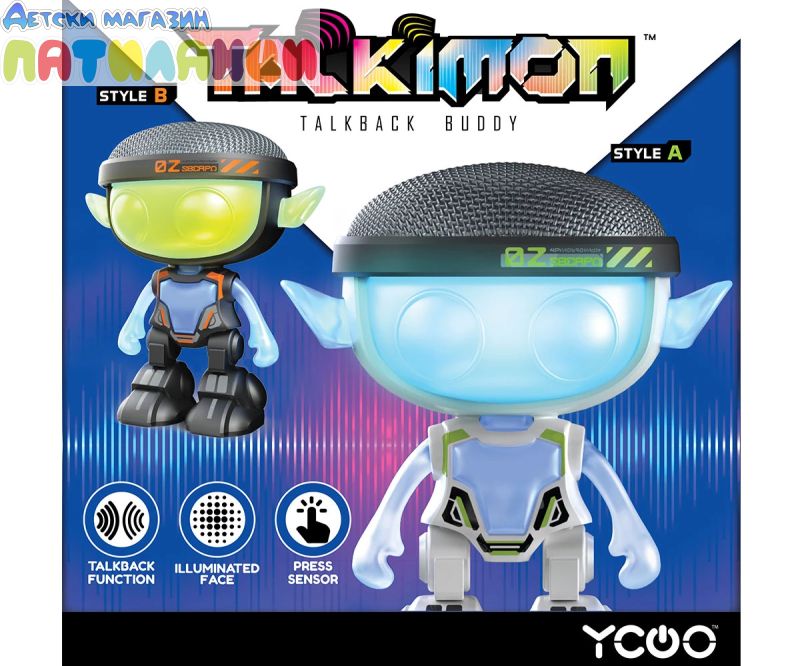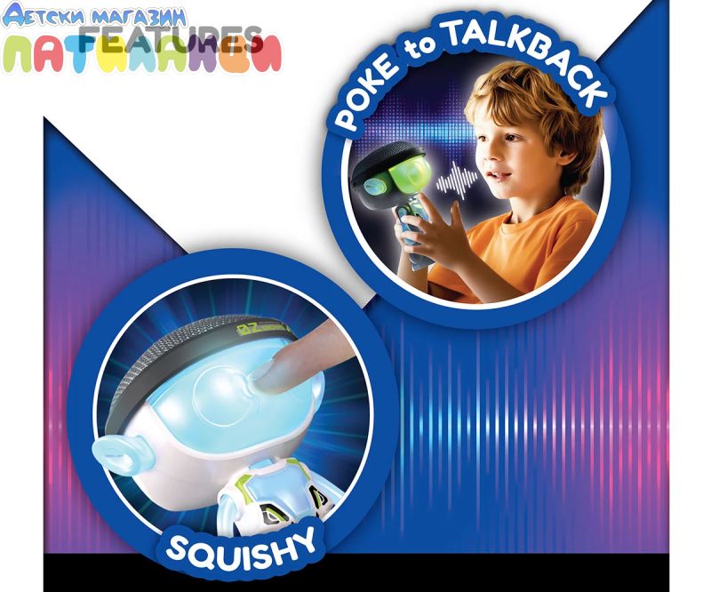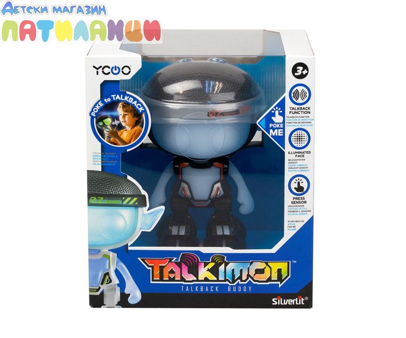 Silverlit Talkimon – Говорещ робот с LED лице и гласови ефекти! Кажи „Здрасти“ на Silverlit Talkimon – твоят нов приятел, който обожава да говори и забавлява! Talkimon има светещо LED лице, което променя цветята си, както и меки уши и гъвкави ръчички, които правят играта още по-забавна и безопасна. Записвай и възпроизвеждай весели съобщения с вградената функция за възпроизвеждане, която изкривява гласа ти по различни и смешни начини. А за още повече смях Talkimon разполага с 5 забавни звукови ефекта, които ще разграничават малки и големи. Идеален подарък за деца, които обичат роботчета, гласови ефекти и интерактивна игра!