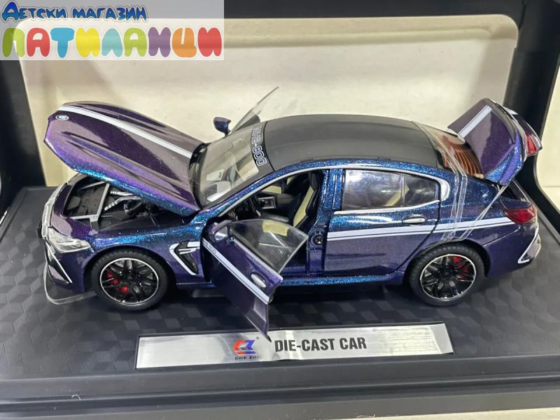 Метален автомобил BMW M8 със звук и светлини 1/24 blue