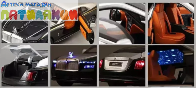 Метален автомобил Rolls Royce Spectre със звук и светлини 1/24 сив
