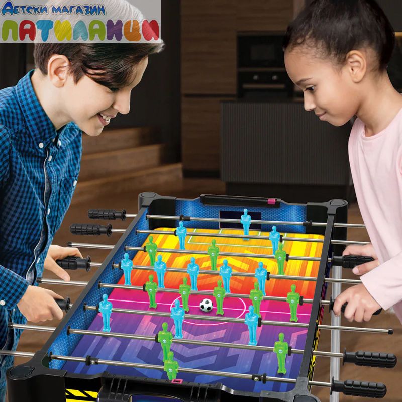 Настолната игра футбол и въздушен хокей е чудесно предложение за домашно забавление с приятели или семейство. Играй с цялото семейство - превърни семейните занимания в приятна емоция. Превключвай лесно между игрите - просто обърни дъската! С неонови светлини и две страни - играй въздушен хокей или футбол и покажи състезателния си дух.
