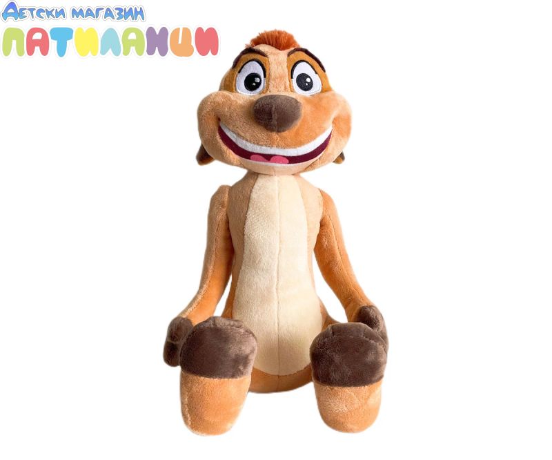 Запознайте се с най-остроумния сурикат в саваната – Тимон, верният приятел на Пумба и Симба от обичания анимационен филм „Цар Лъв“. Този плюшен Тимон винаги е готов за прегръдка, игра и... малко шеги! Със своето усмихнато лице, забавна стойка и мека козинка, Тимон е идеален спътник за всяко дете и чудесно допълнение към колекцията от героите на Дисни.