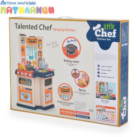 Детската кухня 922-11 предлага реалистично изживяване за малките готвачи, благодарение на течащата вода от мивката, светлинните и звукови ефекти и богатия комплект аксесоари. Играчката насърчава въображението, ролевите игри и координацията на детето.