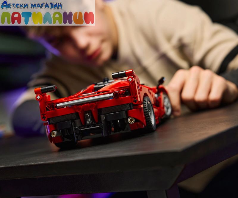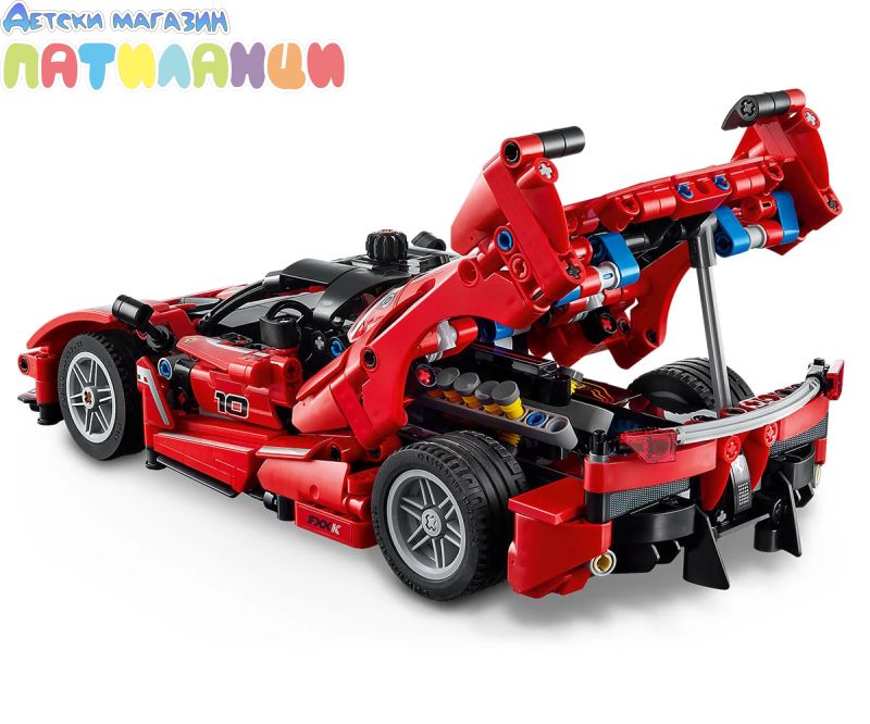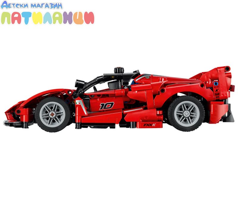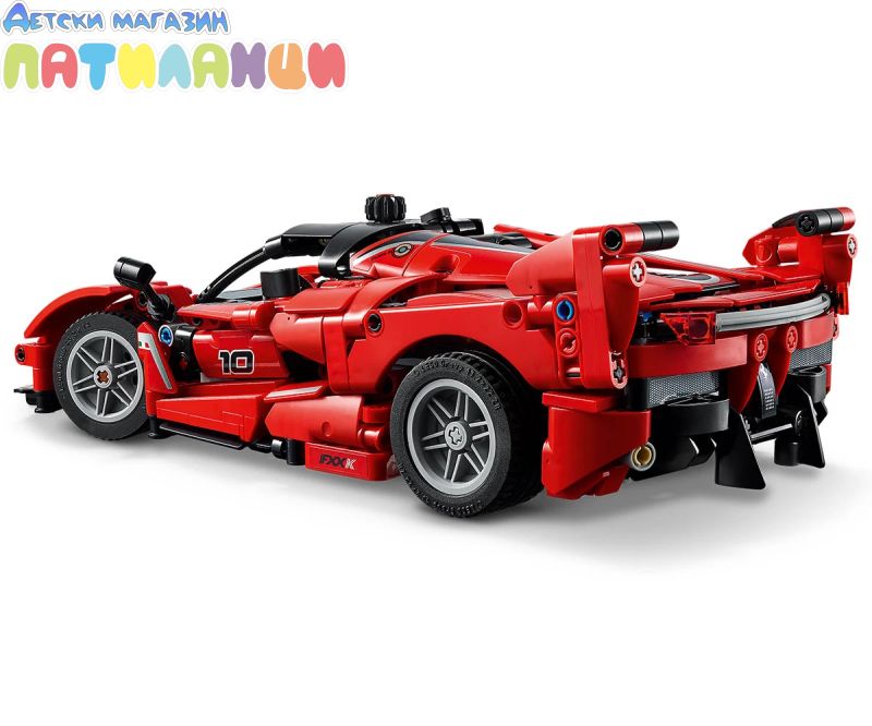 Подарете на малките любители на колите изпълнено с ексшън строително предизвикателство с този комплект с модел на кола LEGO® Technic Ferrari FXX K за момчета и момичета на възраст над 10 години. Феновете на Ferrari могат да се насладят на сглобяването на всички автентични елементи, вдъхновени от реалната кола, преди да изпробват вълнуващите функции. Подобно на оригинала, тази версия на модела разполага с отварящи се врати тип „пеперуда“ и отварящ се капак. Изпробвайте реалистичния диференциал и вижте как буталата се движи, след което отваряте капака на двигателя, за да видите двигателя V12. След като разгледате всички функции, децата могат да покажат вашата кола Ferrari и да се възхищават на емблематичната схема на червения цвят. Този комплект е забавен подарък за момчета и момичета или за всеки със страст към Ferrari и луксозните коли. Колите LEGO Technic се отличават с реалистично движение, за да въведат младите строители с LEGO във вселената на инженерството. Този комплект е чудесен подарък за деца, които обичат превозни средства LEGO. Комплектът съдържа 897 части.