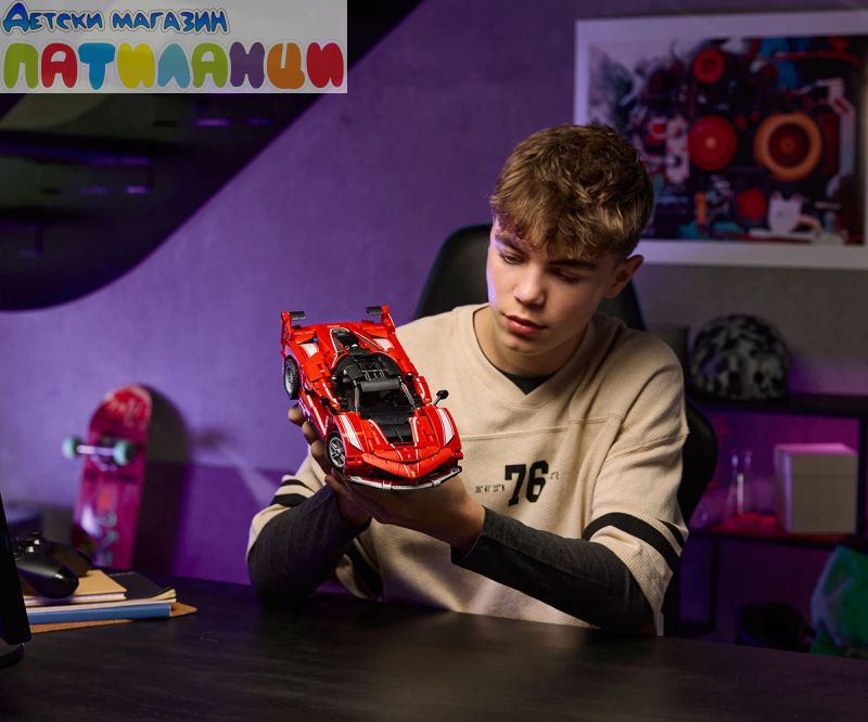 Емблематична цветова схема – с емблематичната червена цветова схема на Ferrari, този строителен модел е впечатляващ експонат, който ще изглежда страхотно в стаята на всеки фен на суперколите;