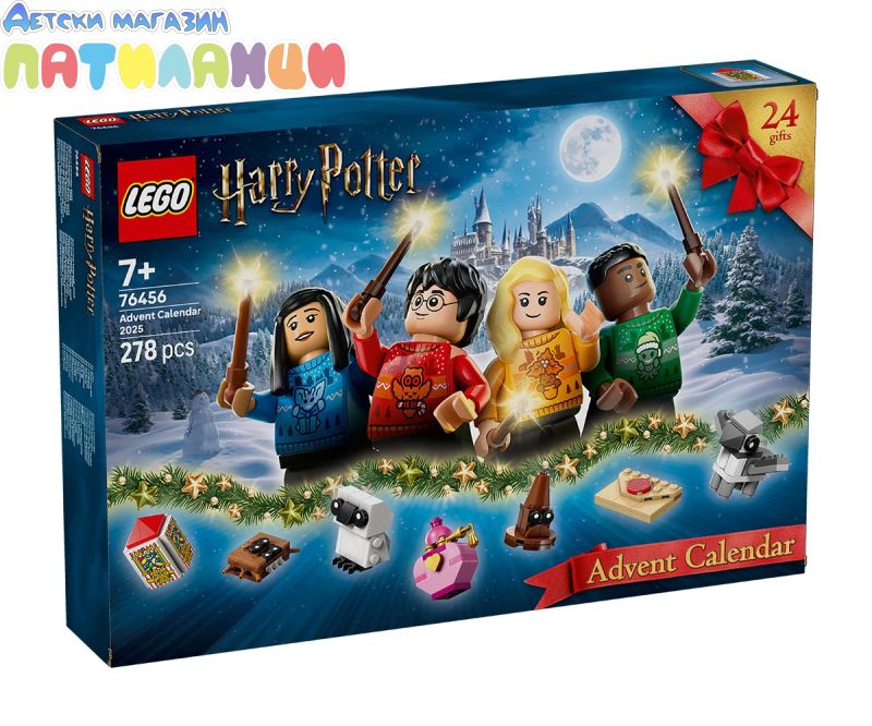 Отворете вратата към веселите магьоснически приключения всеки ден в очакване на Коледа с детски строителен комплект „Колен календар LEGO® Harry Potter™ 2025 г.“ (76456). Магическата коледна празнична играчка с Хари Потър за момчета, момичетата и всички фенове на възраст над 7 години е пълна с изненади за конструиране, с които да създадете празнични истории от магьосническия свят. Коледният календар съдържа фигури LEGO на магически същества като Бъкбийк, Арагог и Патронус елен. Има и 8 минифигурки LEGO на популярни герои, включително Хари Потър, Чо Чан, Драко Малфой и Луна Лъвгуд, всеки с коледен пуловер от Хогуортс и с пръчка. Забавни колекционерски миниконструкции на емблематични предмети като писмо за приемане в Хогуортс, кутия с всякаквовкусовите бобчета на Бърти Бот, разпределителната шапка, различни магически отвари и чудовищната книга на чудовищната предоставят възможности за игра. Комплектът съдържа 278 части.