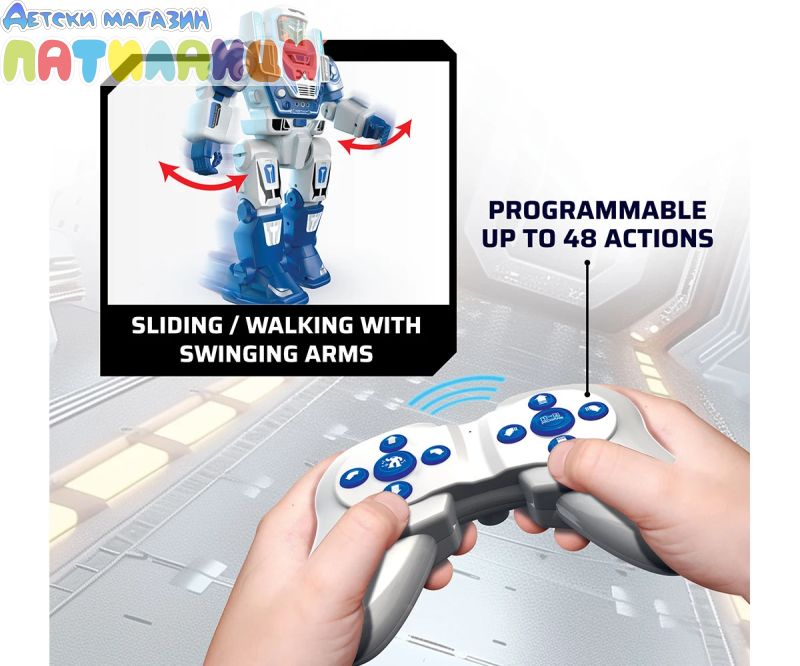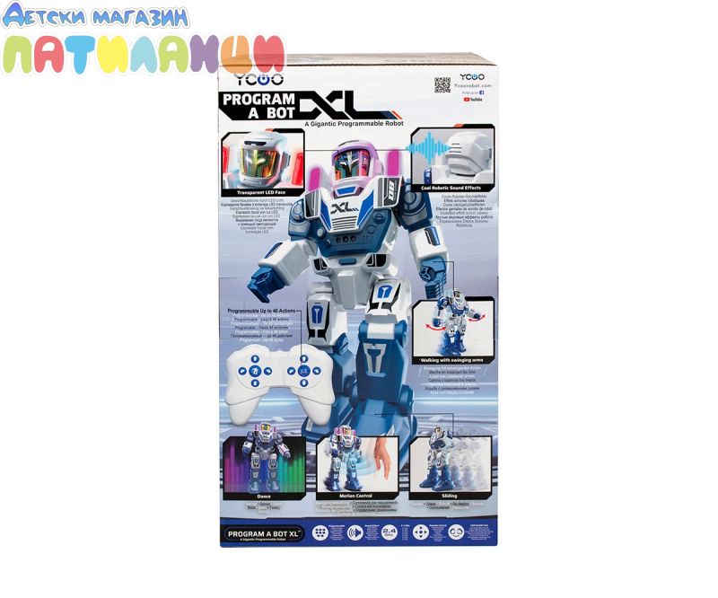 Търсиш най-добрата интерактивна играчка, която ще забавлява, ангажира и обучава детето ти? Гигантският програмиращ се робот (40 см) е перфектният високотехнологичен приятел! Със своята специална полупрозрачна LED лицева маска и три иновативни начина за игра, този робот е повече от обикновена играчка. Той е проектиран да ходи като човек, да се пързаля като скиор и дори да танцува като поп звезда – всичко това със страхотни роботски звукови ефекти! Подходящ за деца над 5 години, този футуристичен робот обещава часове забавление и учене.