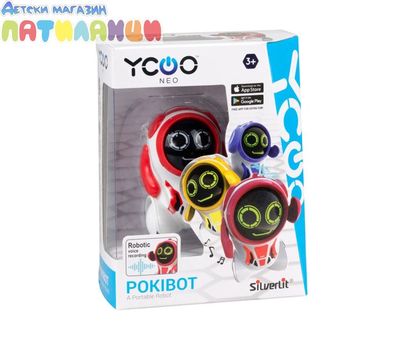 Електронен робот с повече от шест функции, наличен в два стила и шест цвята. Благодарение на високотехнологичните си сензори, той е способен за възпроизвеждане на глас и различни движения. Разполага с безплатно мобилно приложение, взаимодейства с други работи от своята категория и има светещо лице. Без значение какво търсите, уверете се, че ще откриете правилния продукт във вселената на роботите Silverlit. Пълна гама роботизирани играчки с обща цел: технологии за всички възрасти и интереси. Забавни, иновативни и интерактивни. С помощта на инфрачервени сензори и висококачествено колело, роботът умело избягва препятствията, движейки се напред или завивайки, като при това издава забавни звуци. Покиботът реагира на ударите и е снабден със светлинни ефекти, които се изразяват чрез очите и усмивката му.