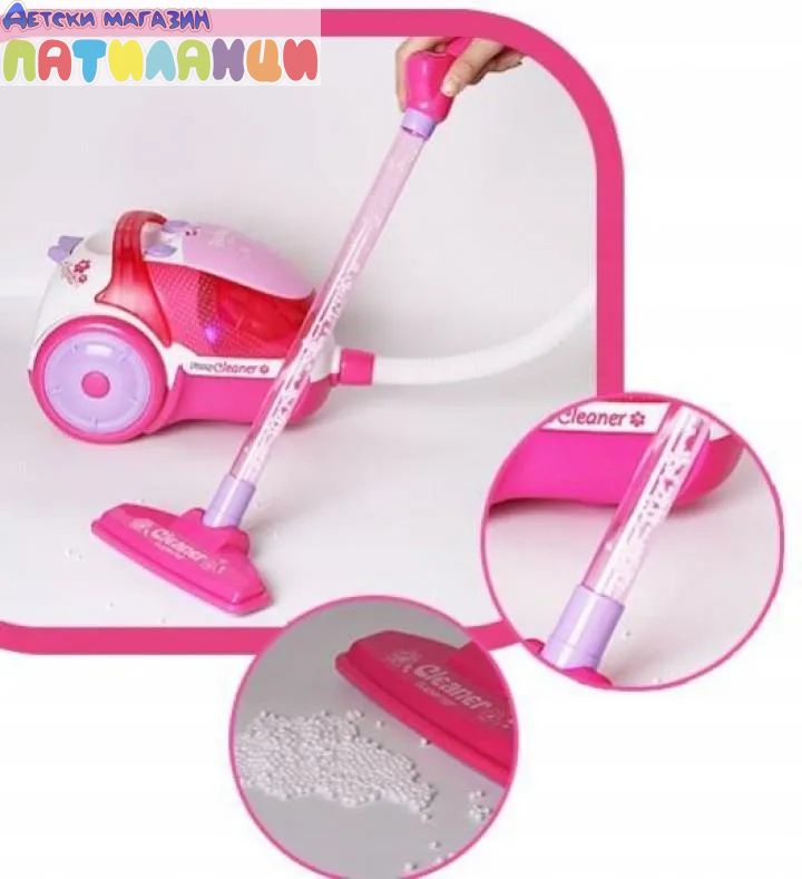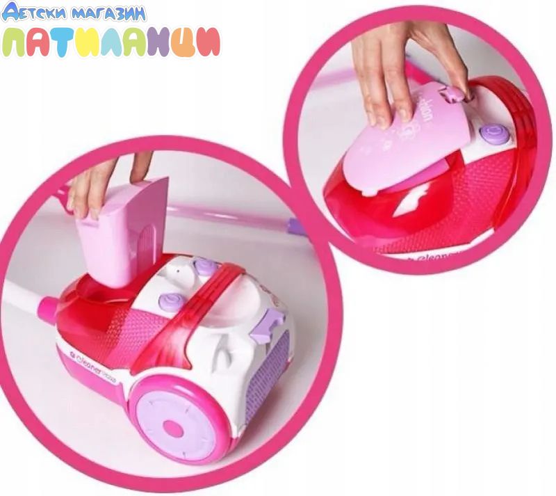 Розовата прахосмукачка от Woopie е перфектният избор за малки домакини. Функцията за засмукване и звукът правят почистването още по-реалистично. Подвижният контейнер за прах се изпразва лесно. Изработена от висококачествени, безопасни за деца материали , тя е перфектен подарък, който ще помогне на детето ви да имитира родителите си - защото кое дете не би искало да бъде възрастен?