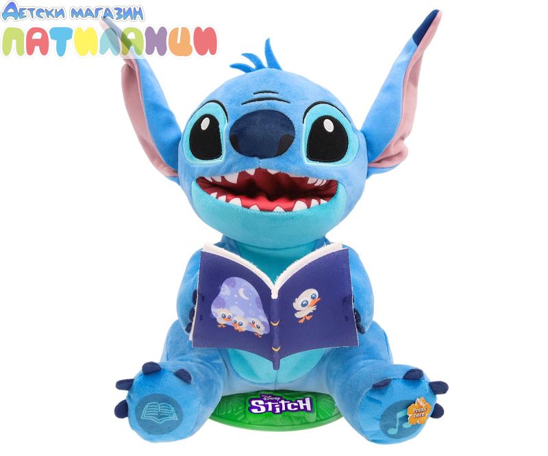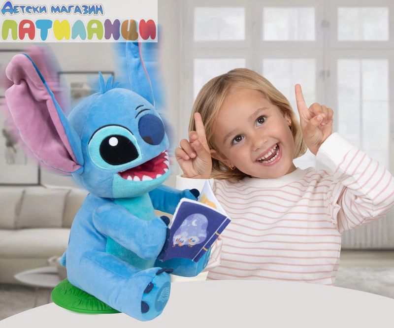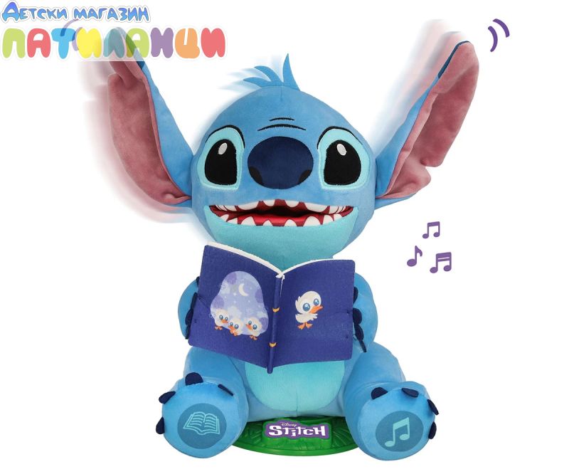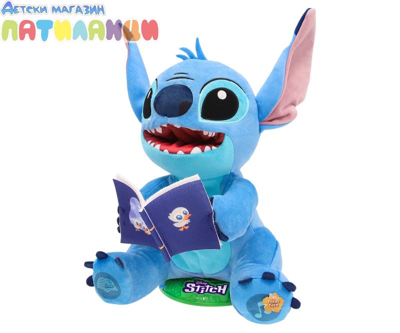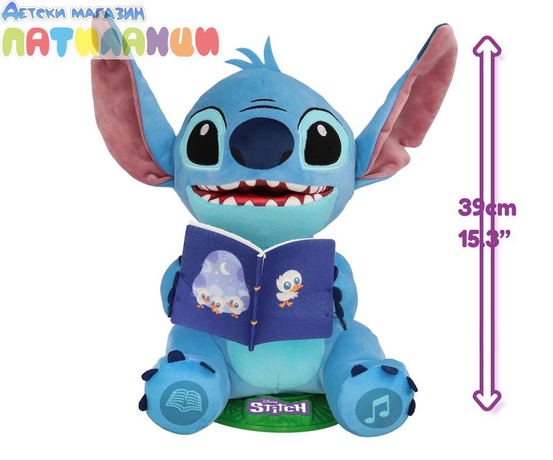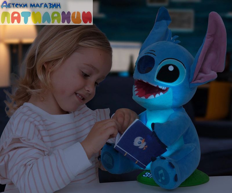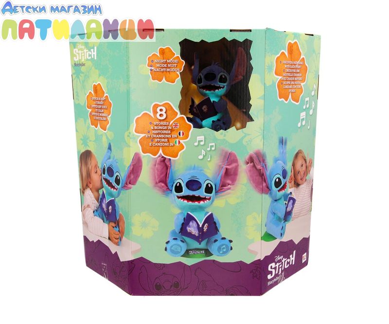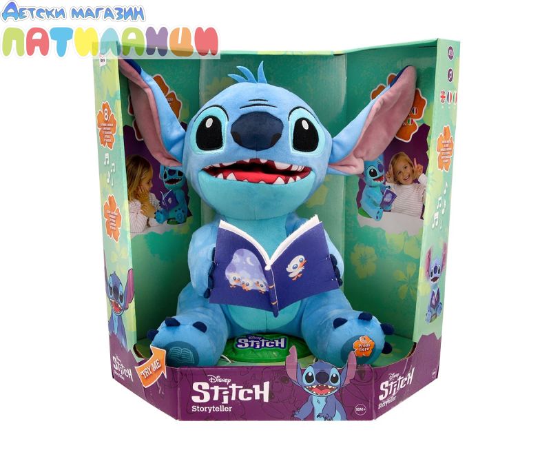 Вашият любим Disney герой Стич е тук, за да ви разкаже всички свои истории и тематични песни! Разказвачът на приказки Стич има 2 режима на игра: истории и песни. Той пее до 4 различни песни или може да ви разкаже 4 различни истории, всички за него и приятелите му! Можете също да активирате режима на нощна лампа, при който коремчето му светва, докато разказва истории или пее песни! Той движи тялото и устата си, докато говори или пее, и е толкова забавно да го гледате как се люлее! Стич разказвач е перфектният подарък за всякакъв повод! Със своите истории и песни предлага часове образователно и забавно развлечение. Не изпускайте възможността да донесете у дома този магичен Disney герой. Стич разказвач е фантастична интерактивна играчка, която стимулира въображението и креативността на децата чрез истории и песни. Перфектният подарък за тези, които обичат да пеят и слушат истории, и за тези, които обожават този Disney герой.