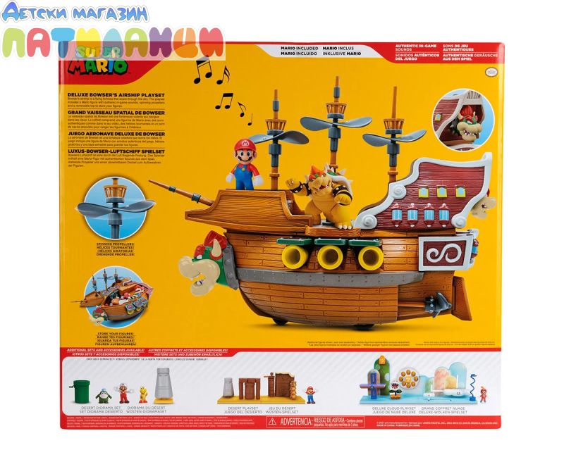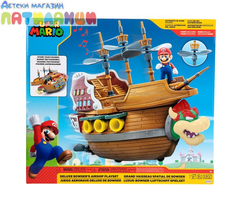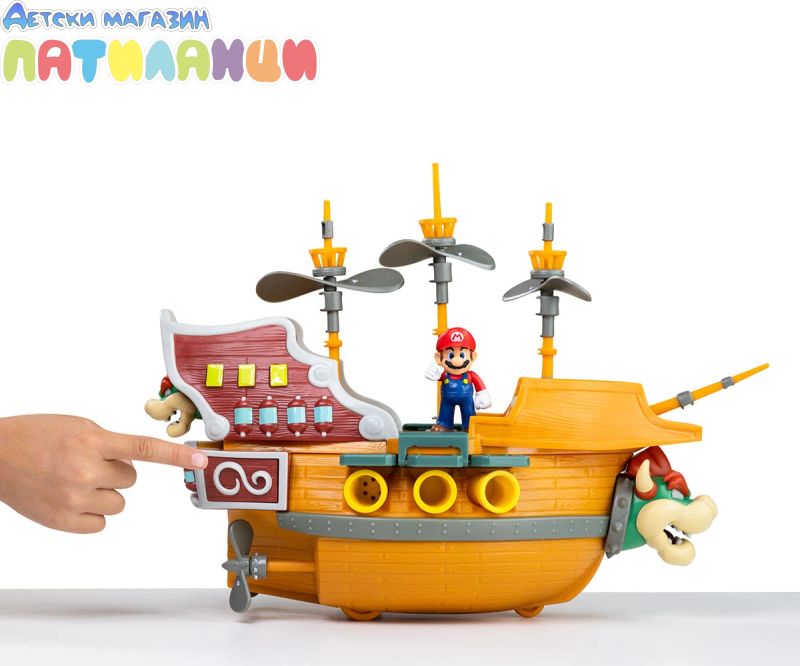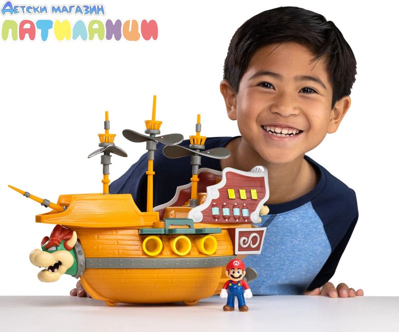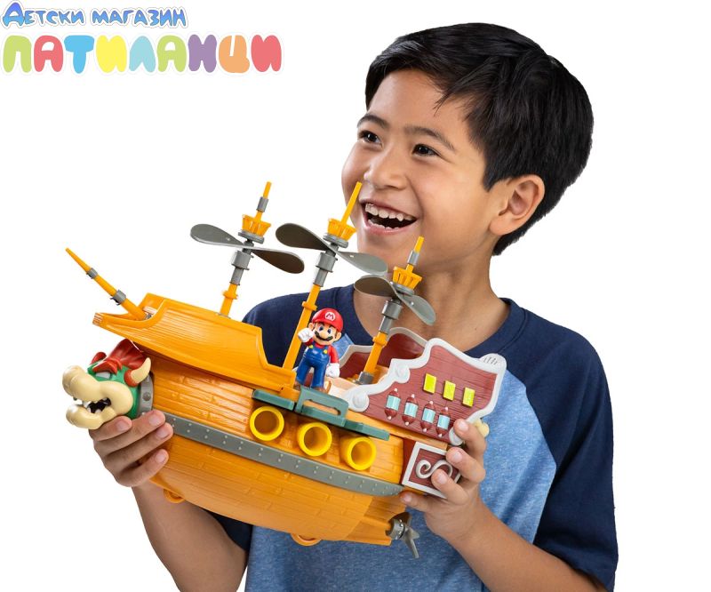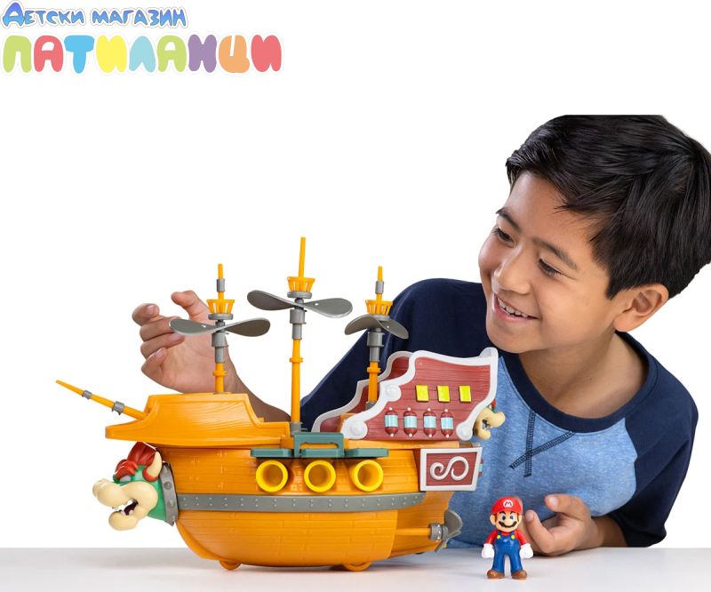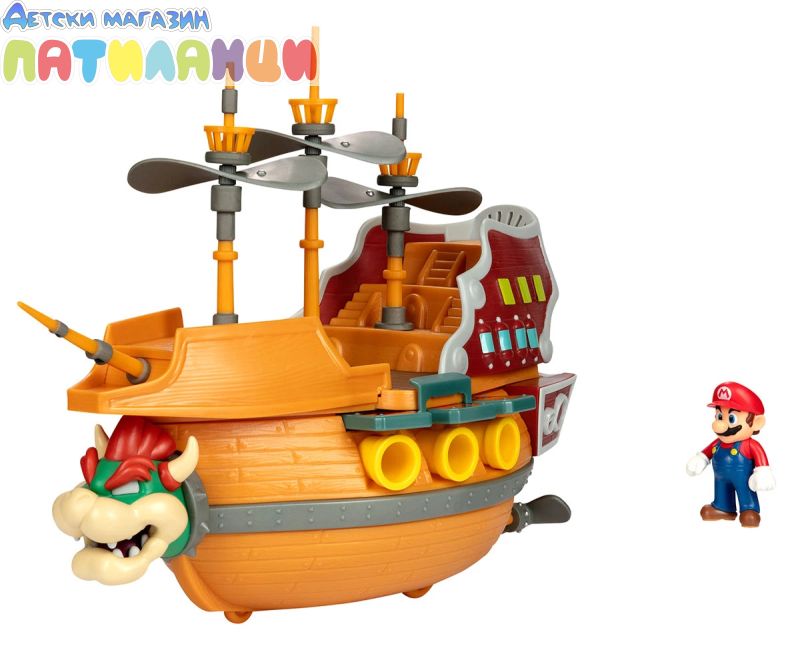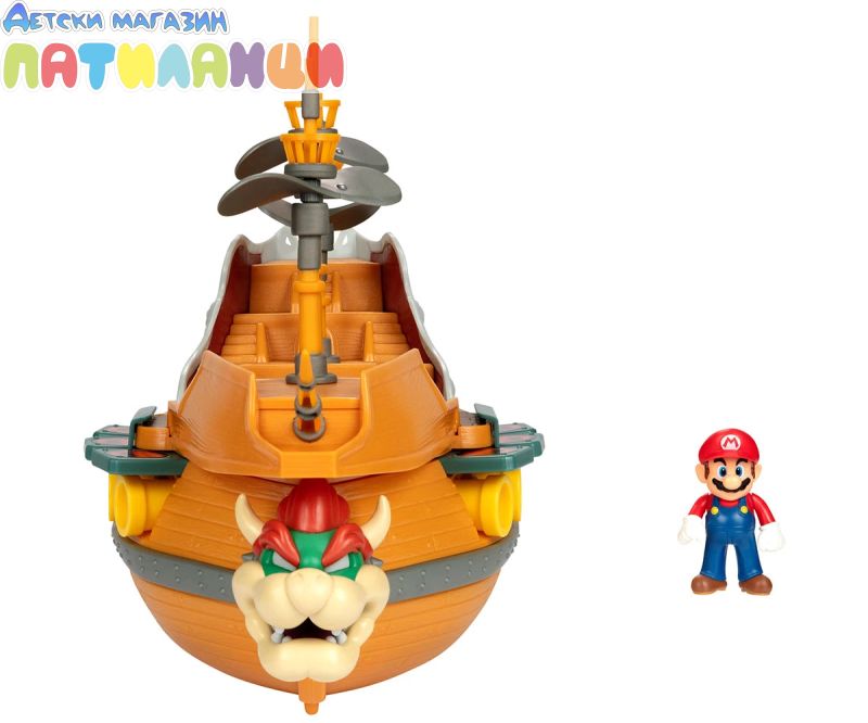 Mario трябва да превземе въздушния кораб, за да спре нашествието на Баузър! Комбинирай с други Super Mario™ фигурки и комплекти (продават се отделно) за още по-голямо забавление. Превърни битката за Mushroom Kingdom в епично приключение!