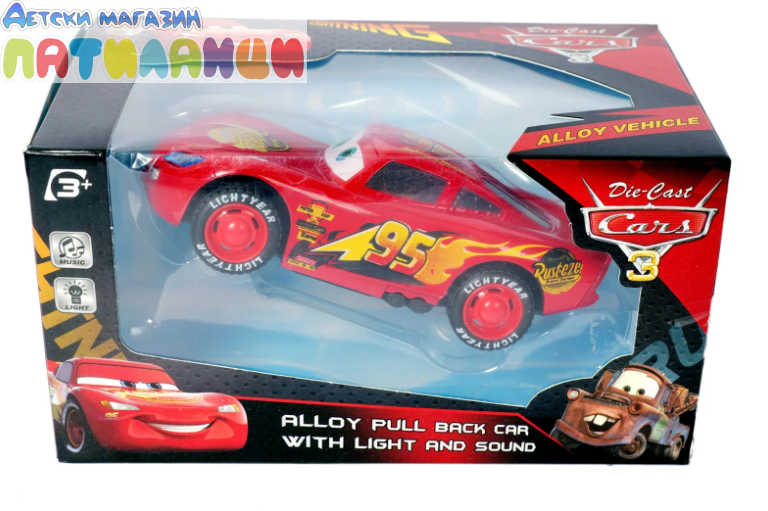 Кола от лята сплав – Издръжлива метална каросерия с детайлен дизайн.Светлина и музика – Забавни ефекти, които децата обожават.