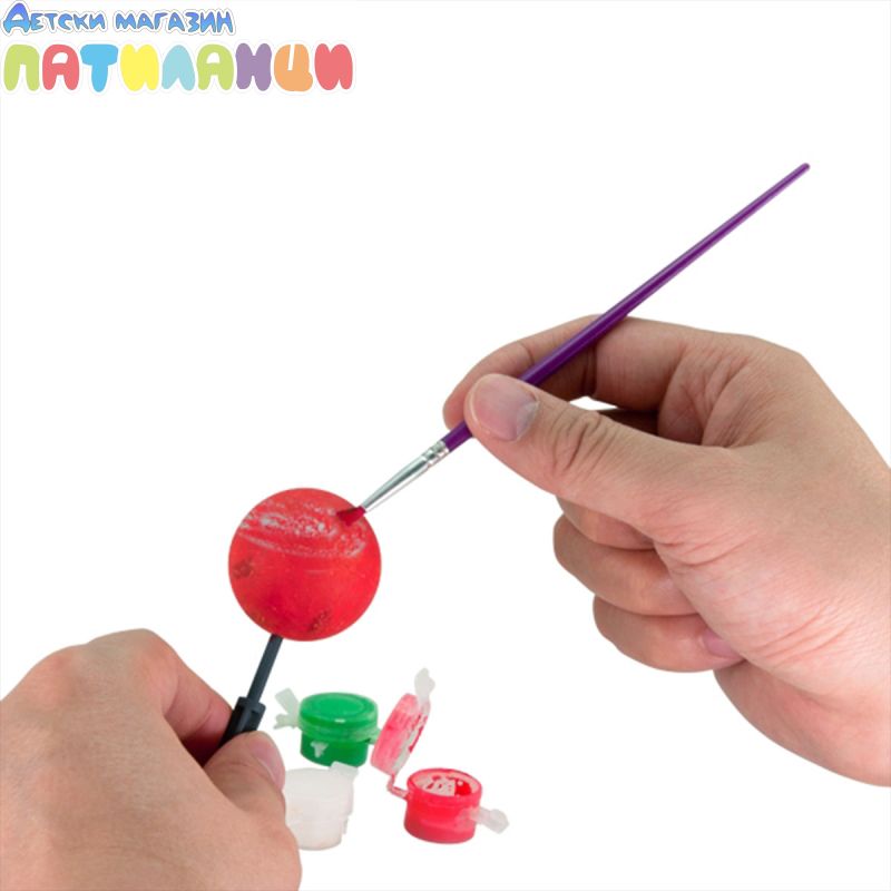 Този комплект идва с лесни за следване инструкции и всички части се сглобяват лесно. Комплектът включва измиваща се боя в 8 цвята, шкурка, четки и още много други! Вашето дете ще се забавлява с часове, докато научава за планетите и Слънчевата система с този гениален подарък.