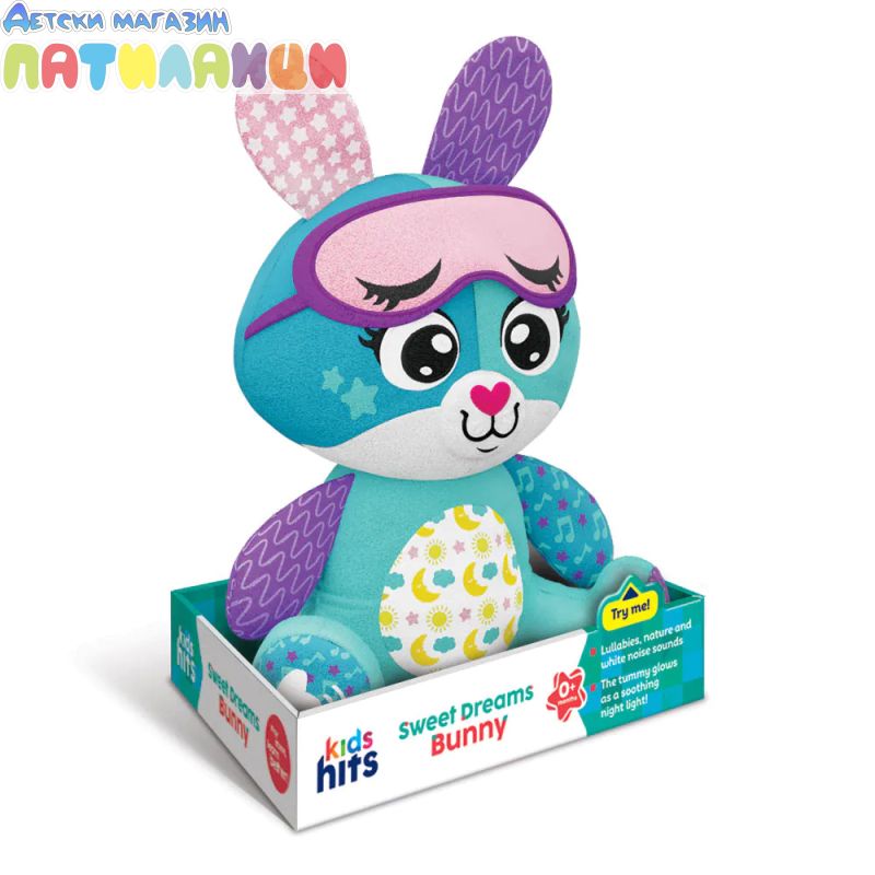 Подарете на вашето мъниче нежни моменти преди сън със Сладкото Зайче „Лека Нощ“ Kids Hits KH50 – мека, музикална и светлинна играчка, създадена да успокоява и да помага за по-бързо заспиване. Идеална за бебета и малки деца.