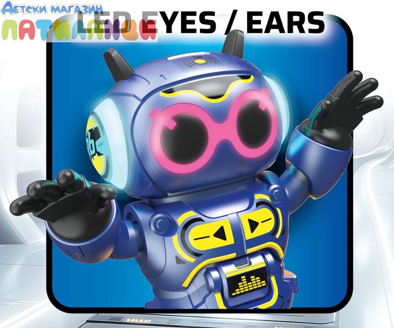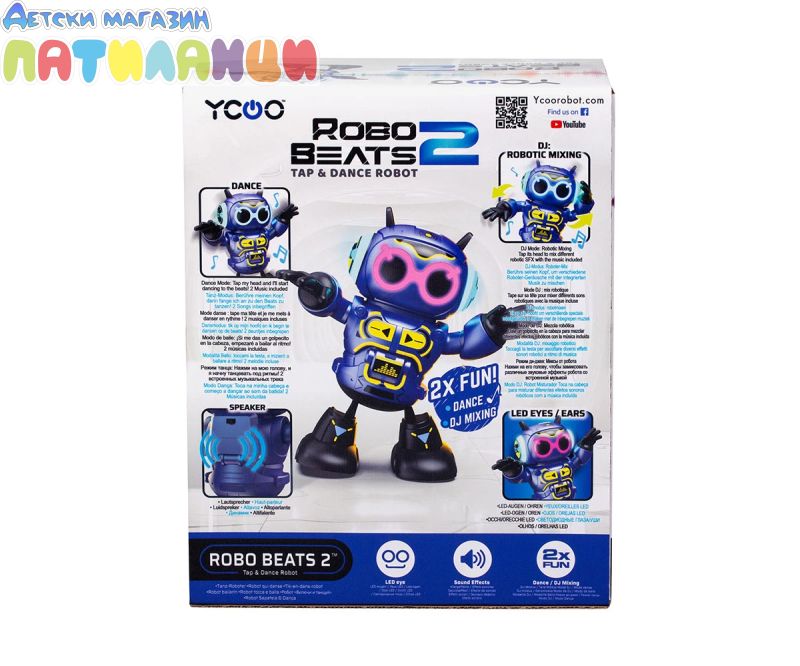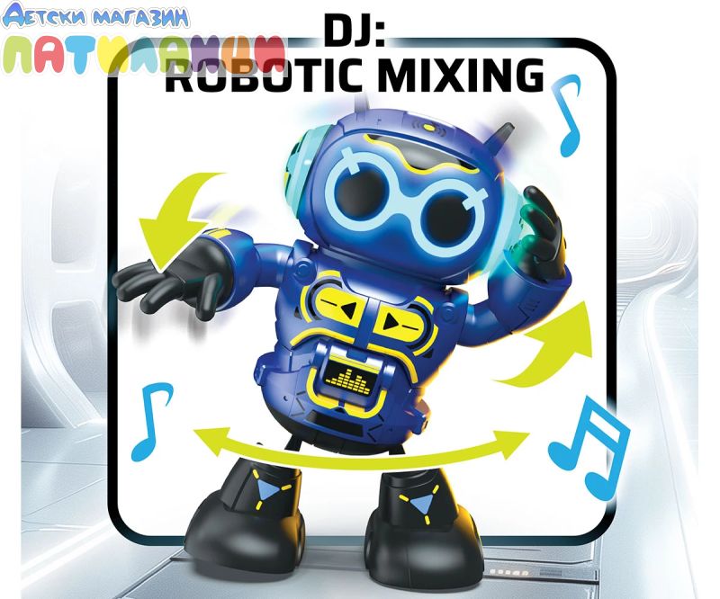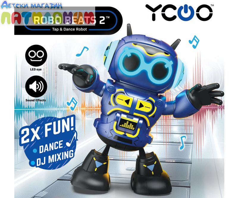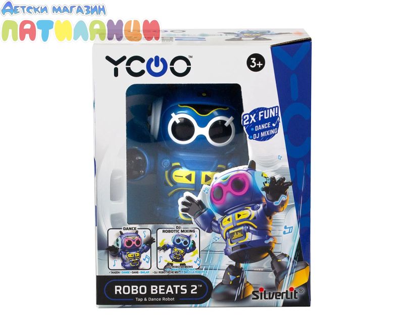 Silverlit Robo Beats 2 – Танцуващ робот DJ със светлини и музика! Готови ли сте за партита? Robo Beats 2 е интерактивен робот, създаден специално за деца, които обичат музика, танци и забавление! Със светещи очи и уши, ритмични светлинни ефекти и три различни музикални мелодии, този робот ще завърши всяка стая в дискотеката. Докоснете с леко потупване главата на Robo Beats – и той започва да танцува и свири музика! А ако преместите главата му като DJ, ще активирате изключителни звукови ефекти и ще създадете собствени ритми – точно като истински диджей.