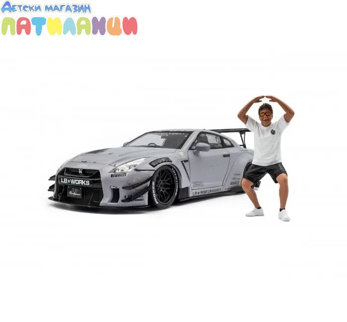 Nissan GT-R (R35) w/Liberty Walk Body Kit Type 2.0 with Kato San Figure, Grey, 2024 - L.E. 4000 pcs.