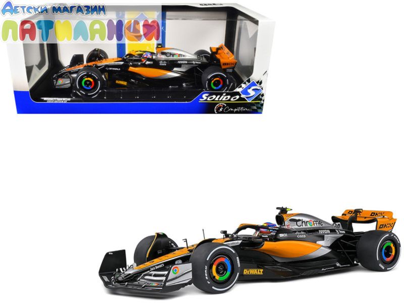 Добавете към своята колекция един от най-впечатляващите болиди от сезон 2023 – McLaren MCL60, пилотиран от младия талант Оскар Пиастри. Прецизно изработен от SOLIDO в мащаб 1:18, този модел представя автомобила от Гран При на Великобритания, отличаващ се със своята характерна ливрея и детайлна изработка.