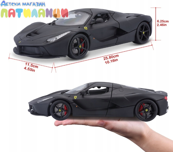 Bburago LaFerrari (18-16901) е модел в мащаб 1:18 от качествената колекция на Ferrari. Всеки модел Ferrari е вярно възпроизвеждане на своя еквивалент в реалния живот, благодарение на щателното внимание към детайлите и използването на висококачествени материали.