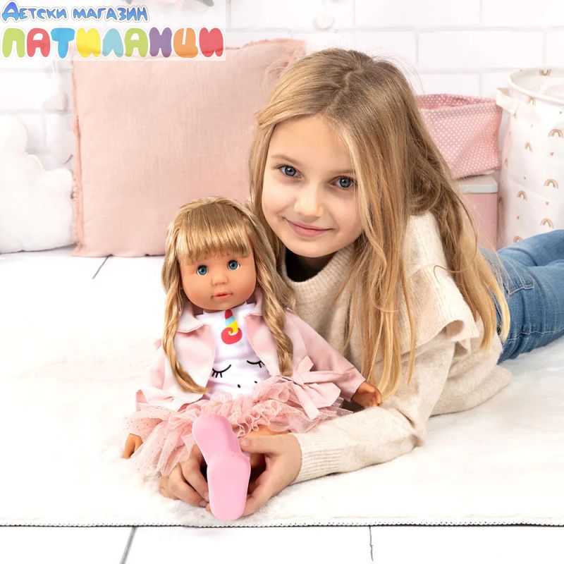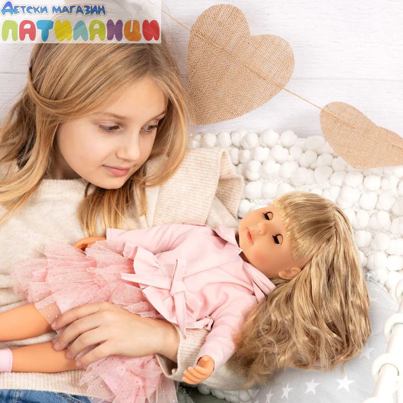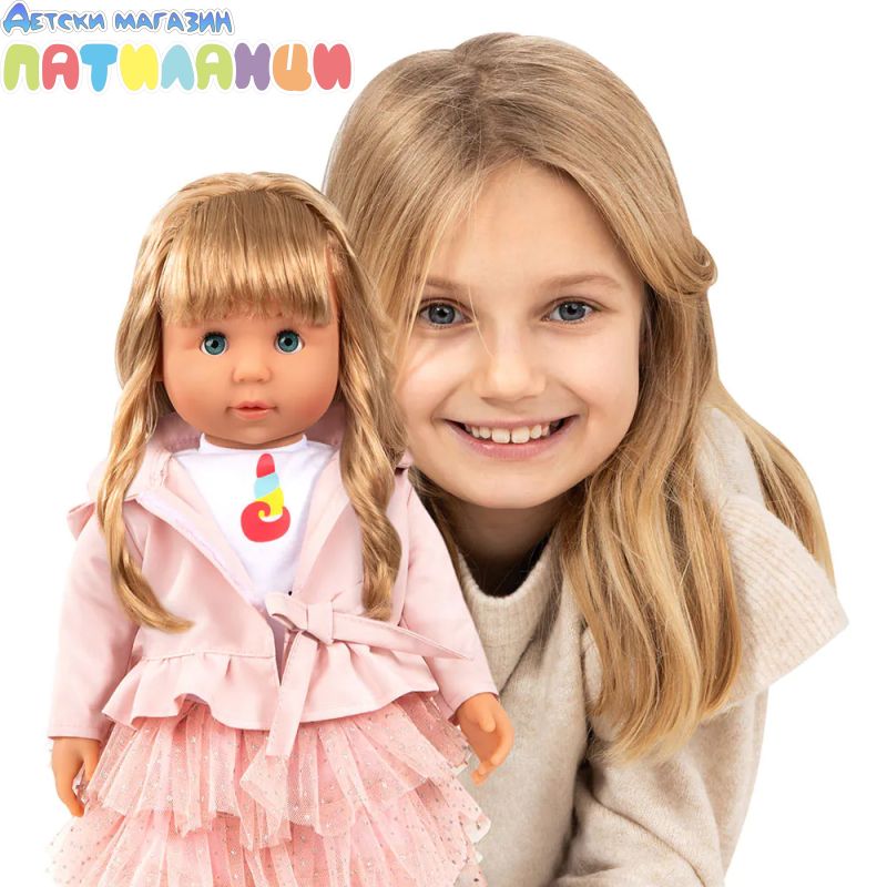 Куклата е облечена в стилно розово сако, което ѝ придава модерен и нежен вид. Подходяща е както за самостоятелна игра, така и за игри с приятели, като подпомага развитието на социални умения и емоционална интелигентност.