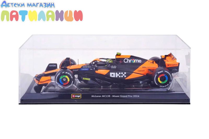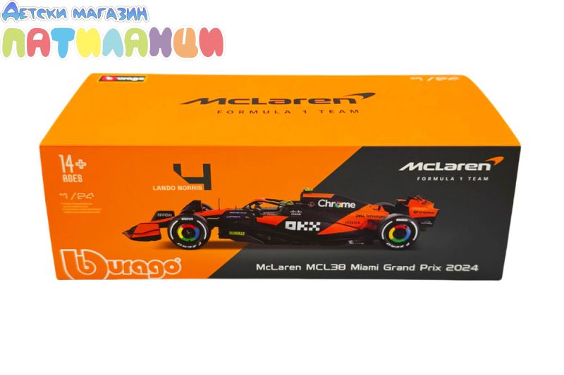 Металната кола McLaren MCL38 Formula 1 в мащаб 1:24 от Bburago пресъздава състезателния болид на отбора McLaren F1 Team с номер #4, управляван от Lando Norris. Моделът впечатлява с висока детайлност и автенчен дизайн, вдъхновен от реалния болид във Формула 1.