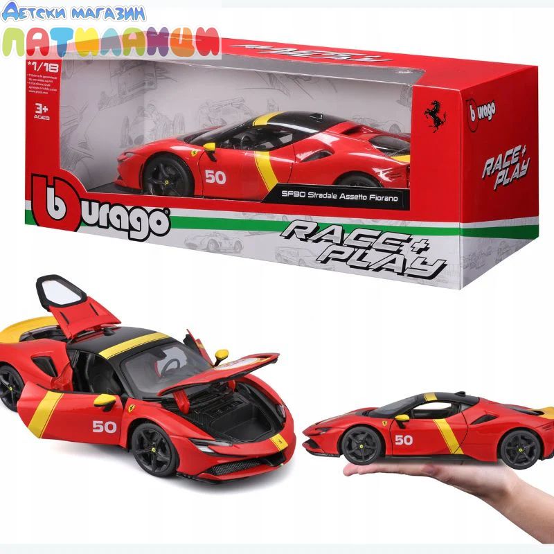 Емблематичен дизайн, върхова мощ и безкомпромисен стил – Ferrari SF90 Stradale ASSETTO FIORANO в мащаб 1:18 от Bburago е истинско бижу за колекционери и фенове на суперколите. ❤️?