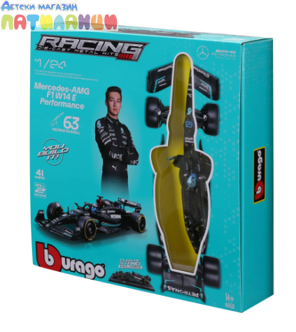Метален модел за сглобяване от Bburago, вдъхновен от болидите на легендарния отбор Mercedes-AMG Petronas Formula 1. Моделът съчетава реалистичен дизайн, качествени материали и удоволствието от самостоятелното сглобяване, което го прави отличен избор както за фенове на F1, така и за колекционери.