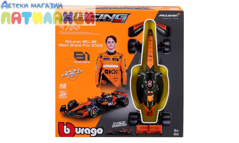 Метална кола Formula 1 за сглобяване Mclaren Team MCL38 #81 Oscar Piastri Bburago 1:24