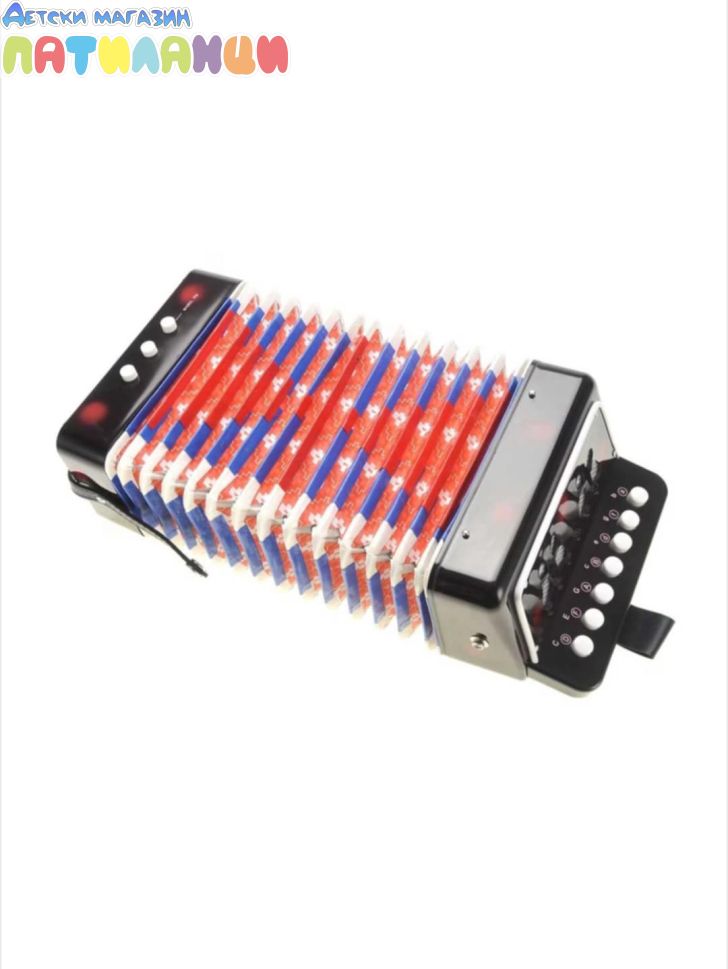 Пластмасов акордеон с 7 клавиша и 3 бутона.