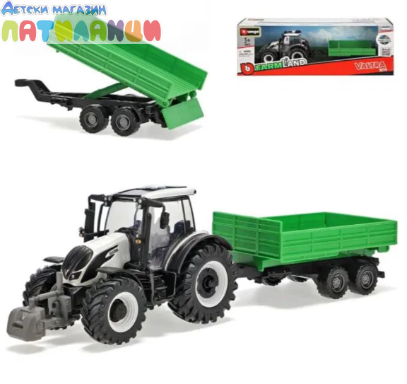 Име: Bburago - Трактор с ремарке Лукс 10 см, VALTRA N174