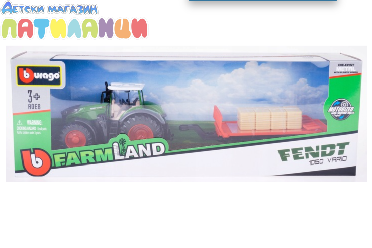 Bburago - Трактор с ремарке Лукс 10 см, FENDT 1050