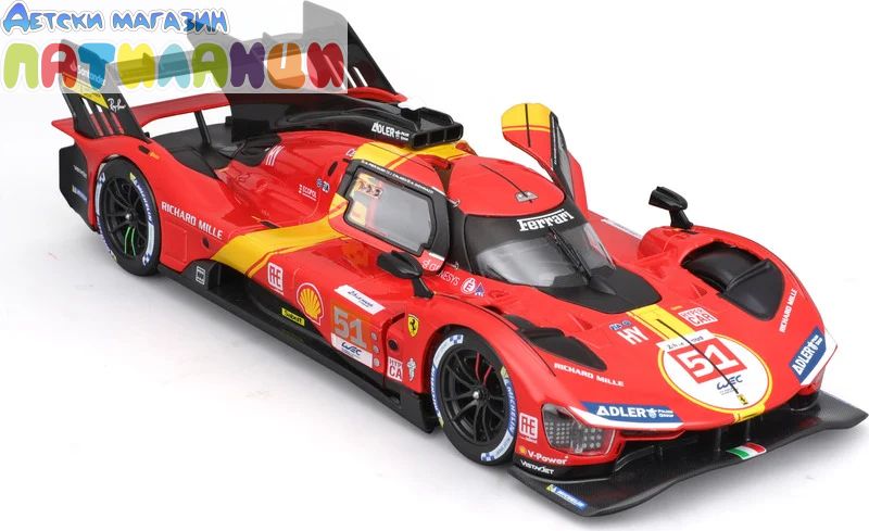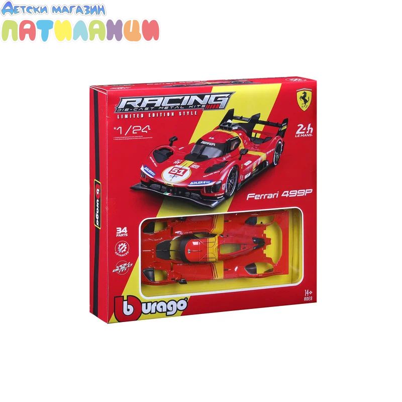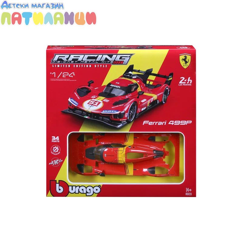 Почувствайте тръпката от легендарния автомобилен спорт с металната кола за сглобяване Ferrari 499P LMH – победител в 24 часа на Льо Ман, от световноизвестния производител Bburago. Моделът пресъздава в мащаб 1:24 емблематичния хиперкар, донесъл историческа победа на Ferrari в престижното състезание.