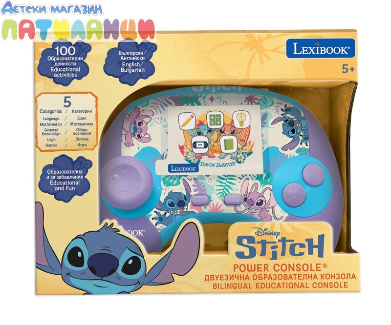 Образователно съдържание за учение, преговор и тестване на знанията – всичко това в една супер забавна конзола със Стич! Налични са 5 категории активности на български и английски език: език, математика, обща култура, логика и игри!