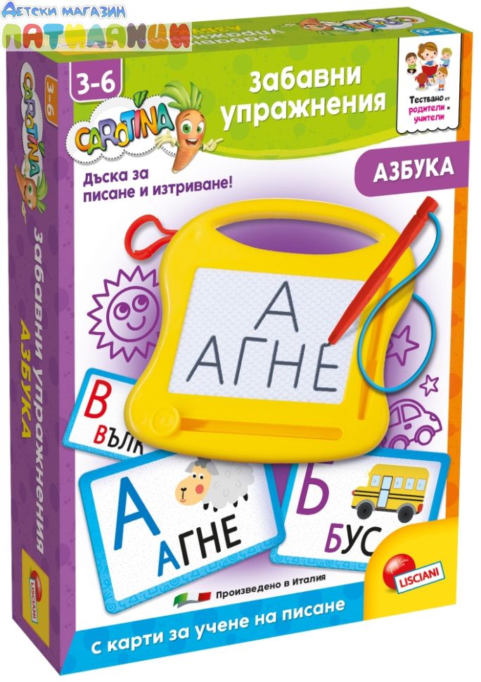 Магическа дъска за писане Забавни упражнения с азбуката LISCIANI CAROTINA