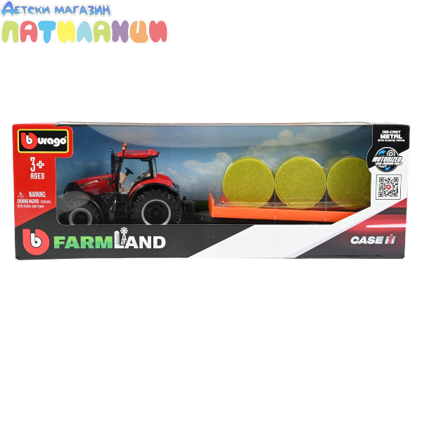 Трактор с ремарке Case с бали Burago
