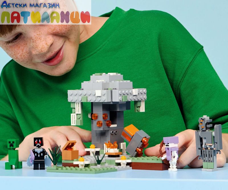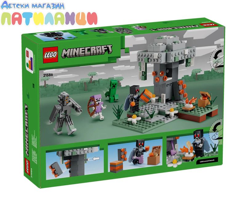 Геймърите могат да се влязат в един от странните и прекрасни биоми в играта Minecraft® (21586) със строителен комплект LEGO® за момчета и момичета над 7 години. Creaking от тухлички се изправя срещу героичния крилат Mothman, докато Creeper™ и скелетът се обикалят от биома в безцветната градина. Покрито с мъх и очи-цветя, безцветното дъбово дърво от играта съдържа ценна смола и изключително важното сърце, което децата могат да вземат, като свалят кората или натиснат щифта на гърба на това, за да я извадят. Минифигурата на Mothman има крила на елитра и държи омагьосана брадва, а минифигурата на скелета носи диамантена броня и лък. Други аксесоари, които вдъхновяват въображаемата игра, чрез сандък за съхранение, бучки смола, лагерен огън и свинско месо. Тази идея за подарък за рожден ден Minecraft се предлага с приложението LEGO Builder, което позволява на децата да компютърират, да завъртат в 3D и да проследяват напредъка с лесни за следващи цифрови инструкции. Полетете към приключенията с героичния Mothman! Издигнете се с омагьосаните си брадва и крила на елитра над биома на безцветната градина. Бийте се със скелет и Creeper™, за да защитите сърцето, скрито в голямото дърво. Натиснете тайния щифт, за да го извадите, а след като пазите от домашния враждебен Creaking! Със съкровище за намиране и цвъртящо свинско на лагерния огън няма време за губене!