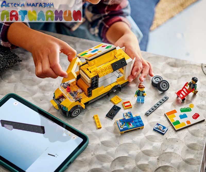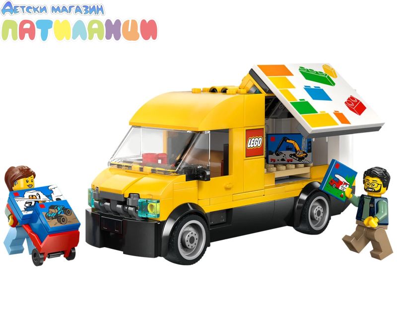 Осигурете си безкрайни часове забавление с комплекта за конструиране LEGO® City: Бусът на LEGO (60500) на възраст над 6 години. Децата може да сгъне страните на фургона, за да получи достъп до товарното му отделение, да вдигне капака, за да види двигателния отсек и да отвори задните врати. Комплектът включва и ръчна количка, палет и 4 миниатюрни кутии за играчки LEGO, както и минифигурки на шофьор и работник за игра с въображение. Този комплект за игра с модел на камион е чудесен подарък за празник или рожден ден за момчета и момичета, които обичат превозните средства-играчки, конструиращи с LEGO и разказването на историята с въображение. Добавете този комплект-играчка за сглобяване към другите комплекти от серията LEGO® City (продава се отделно) за още по-големи приключения. Децата могат да се насладят на интуитивно конструиране с този комплект „Бусът на LEGO“ в приложението LEGO Builder, да успеят да завъртят и завъртят с 3D инструкции, като същевременно запазват и проследяват напредъка си, докато строят. Карайте от LEGO® City със стил със страхотния бус на LEGO! Сгънете страните на този яркожълт камион, за да натоварите палета с кутии LEGO, отворите задните врати или открехнете капака, за да проверите двигателя. Има дори ръчна количка за пренасяне на тежки товари! Когато сте готови да доставите, качете се в кабината и потеглете към магистралата!