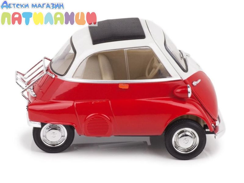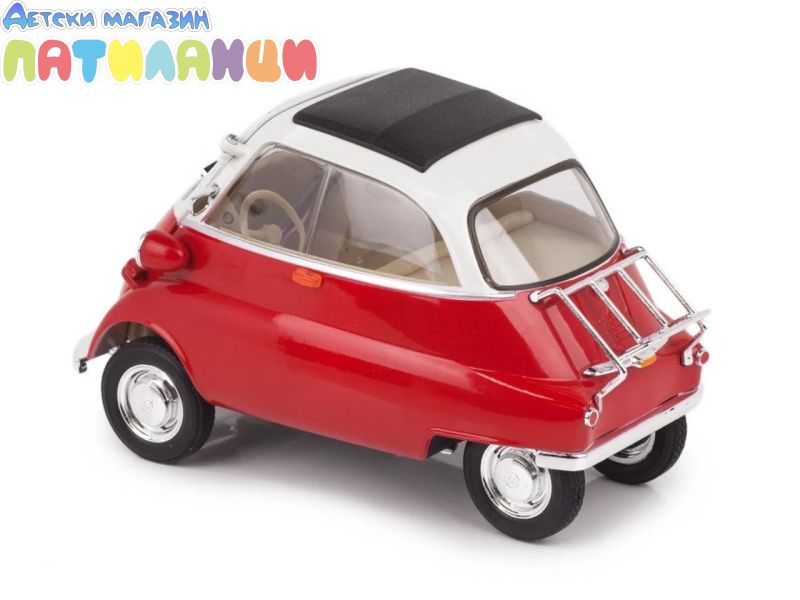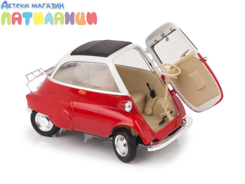 Впуснете се в носталгично пътешествие с тази миниатюрна реплика на легендарния BMW Isetta – емблематичен микрокар от 50-те години! Точно пресъздадена в мащаб 1:18 от Welly, тази метална кола пленява с автентични детайли и стил.