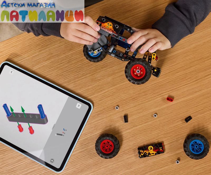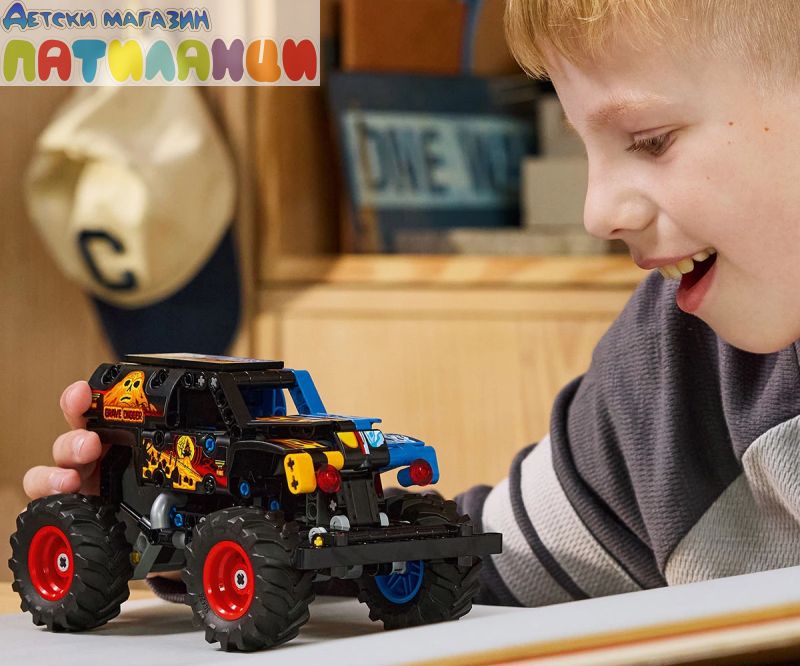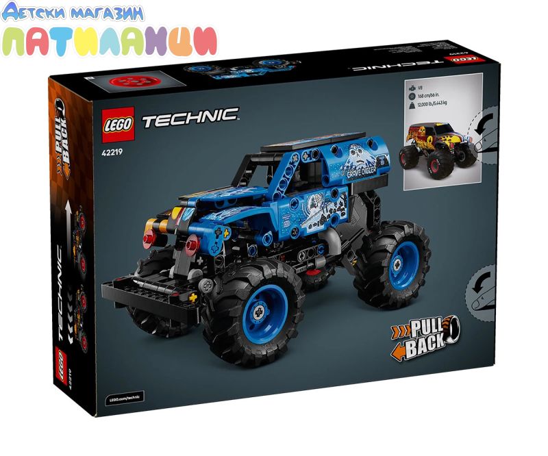 Запалете епични времена за игра с този страхотен камион с издърпване Monster Jam™ за момчета, момичета и деца на възраст над 7 години. Използвайте функцията за издърпване, за да задействате камиона-играчка LEGO® Technic Monster Jam Grave Digger™ Огън и лед (42219). Пригответе се за епична игра, докато малките фенове на камионите-чудовища пресъздават любимите си трикове и каскади от арената на Monster Jam. Разгледайте привлекателните детайли на дизайна, вдъхновени от истинския камион Grave Digger Огън и лед, с огън и пламъци от едната страна и леден дизайн от другата страна. Този строителен комплект е забавен подарък за малки строители, които обичат превозни средства LEGO и Monster Jam. Комплектът LEGO® Technic се отличава с реалистично движение и механизми, които въвеждат младите строители на LEGO във всичките на техниката по достъпен и реалистичен начин. Децата може да се строи уверено с приложението LEGO Builder, което им позволява да увредят, да завъртят в 3D и да проследят напредъка си с лесни за следващи цифрови инструкции. Пламтящата топлина се среща с ледената сила с Monster Jam™ Grave Digger™ Огън и лед! С огън и пламъци от едната страна и леден дизайн от другата страна, този камион е готов за всичко. Накарайте съперниците си да се потят, докато изтегляте камиона си, след което го пуснете, за да го изпратите бързо напред. След това изпробвайте любимите си трикове и каскади от арената на Monster Jam. Огънят и ледът са два пъти по-забавни!