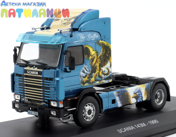 Колекционерски метален модел на емблематичния Scania 143M Truck от 1990 г., представен в класическия дизайн The Griffin. Моделът е част от серията на Hachette и е създаден за ценители на ретро камиони и висококачествени die-cast умалени модели.