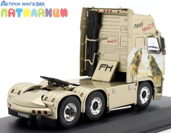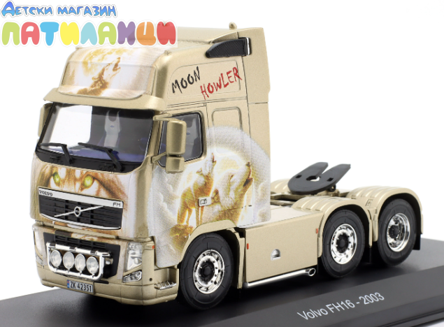 Висококачествен колекционерски модел на мощния Volvo FH16 Truck от 2003 г., представен в впечатляващия дизайн Moon Howler. Моделът е част от колекционната серия на Hachette и е създаден за любителите на модерни европейски влекачи и детайлни die-cast реплики.