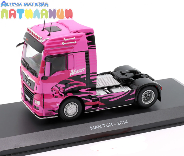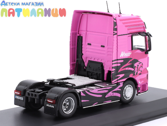 Изработен в мащаб 1:43, влекачът разполага с метална каросерия и реалистично възпроизведени детайли – кабина, шаси, джанти и характерни дизайнерски елементи на серията TGX. Подходящ е както за колекция, така и за стилен подарък.