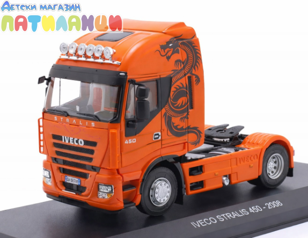 Колекционерски метален модел на камион Iveco Stralis 500, изработен с внимание към детайла и реалистичен дизайн. Мащаб 1:43 и висококачественото изпълнение го правят идеален за колекционери и любители на моделни камиони. Яркият оранжев цвят и декоративните елементи добавят допълнителна автентичност и стил.