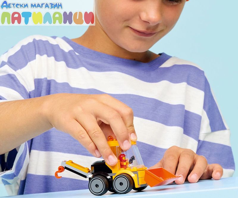 Положете основите на вълнуващите строителни приключения с миникомплект LEGO® City Возила - Строителен товар (60483) за деца на възраст от 5 години. Този компактен, лесен за построяване камион-играчка предлага на младите строители забавно въвеждане в света на LEGO City. Детайлите включват гуми, шофьорска кабина, кофа за предно товарене и задна кука. Комплектът включва минифигура на младши строителен работник, която се побира идеално в шофьорската кабина за часове игра наужким. Част от колекцията LEGO City Возила, този строителен товарач-играчка е идеален за малки деца и е чудесен подарък за изведнъж или роден ден за момчета, момичета и деца, които обичат превозните средства на строителната площадка и въображаемата игра. Комбинирайте го с други комплекти LEGO City (продава се отделно) за още по-голямо удоволствие. С комплекта за игра LEGO City Возила децата могат да се насладят на интуитивно конструиране с приложението LEGO Builder, да машинират и завъртат с 3D инструкции, като същевременно запазват и проследяват напредъка си – всичко това от приложението. Когато нещо работи, изпратете LEGO® City Возила - Строителен товарач! Тази компактна машина с кофа за предно зареждане, задна кука и мощни гуми е идеална за големи строителни работи на труднодостъпни места. Качете се в шофьорската кабина и се отправете към най-близката строителна площадка. В LEGO City очаквате страхотни строителни приключения!
