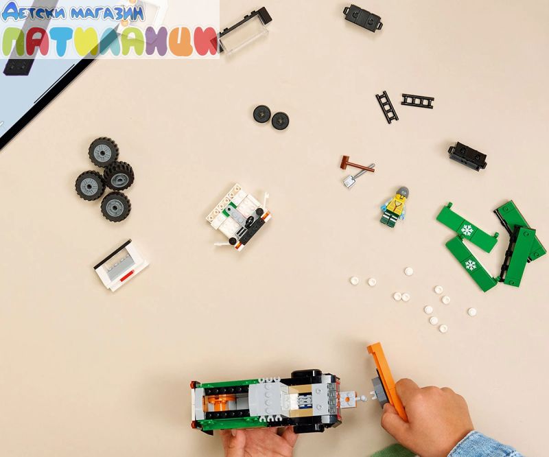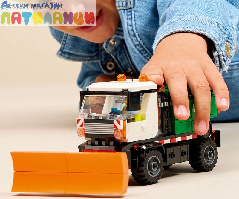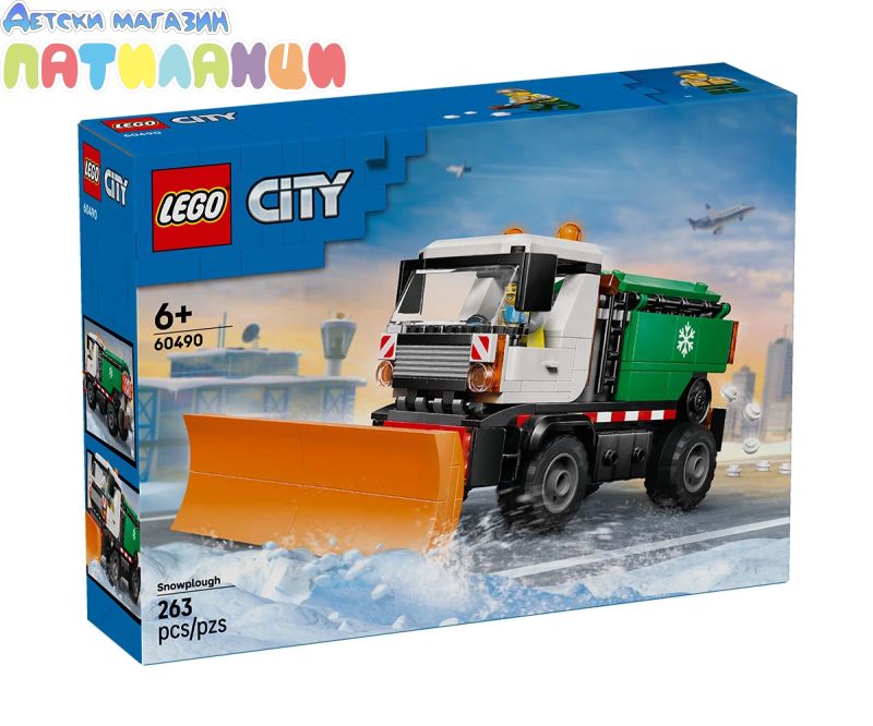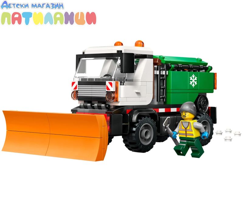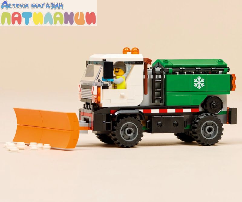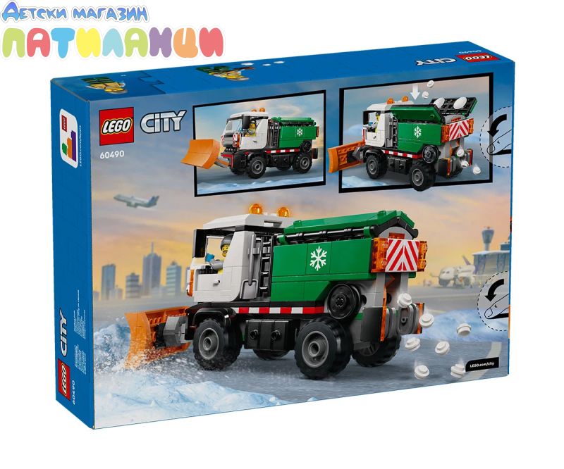 Подарете на своя ежедневен герой комплект за конструиране на снегорин от LEGO® City (60490) за деца на възраст от 6 години. Децата може да накланя, вдига и пуска предния плъг, да зарежда солни елементи LEGO в коритото и да бутат камиона, за да активира функцията за разпръскване на солта. Този камион-играчка има и кабина с 2 седалки, които се накланят за достъп до двигателя, както и странични кутии за съхранение на солта-играчка и скоби за съхраняване на инструменти. Просто добавете минифигурата на шофьора за вълнуващи зимни приключения по почистване. Този комплект за игра с модел на камион е чудесен подарък за празник или рожден ден за момчета и момичета, които обичат превозните средства-играчки, конструиращи с LEGO и разказването на историята с въображение. Добавете този комплект към други (продава се отделно) от серията LEGO City за още по-големи приключения. Децата могат да се насладят на интуитивното конструиране с този комплект с камион от LEGO в приложението LEGO Builder, да машинират и завъртат с 3D инструкции, като запазват и проследяват напредъка си - всичко това от приложението. Идва зима! Мобилизирайте страхотния камион за снегопочистване на LEGO® City. Тази мощна машина е идеална за разчистване на затрупани от сняг пътища и писти. Наклонете кабината, за да проверите двигателя, след това заредете бункера със сол и се качете на борда. Спуснете плуга и разчистете снега, като разпръсквате сол по време на движение. Всички са на крак за това хладно приключение с LEGO!