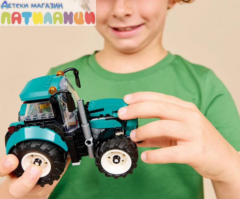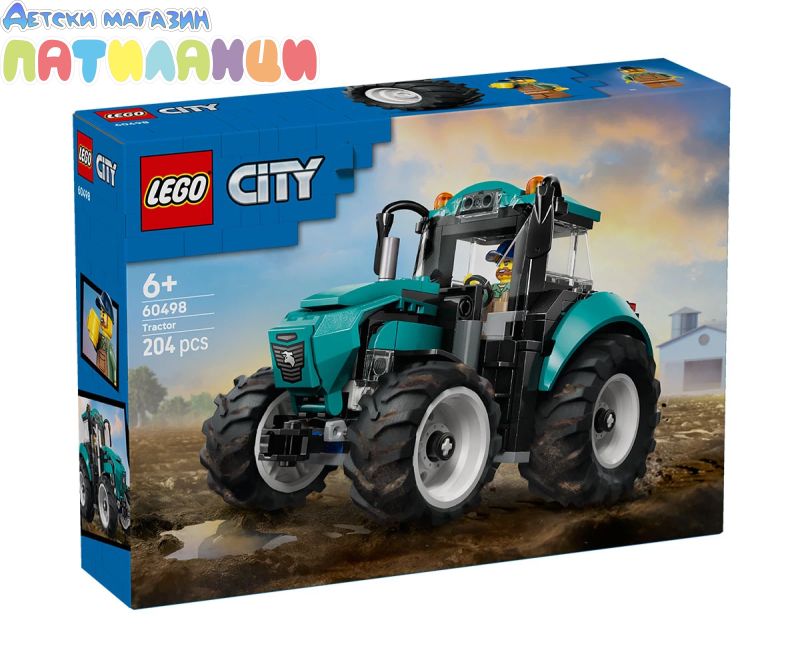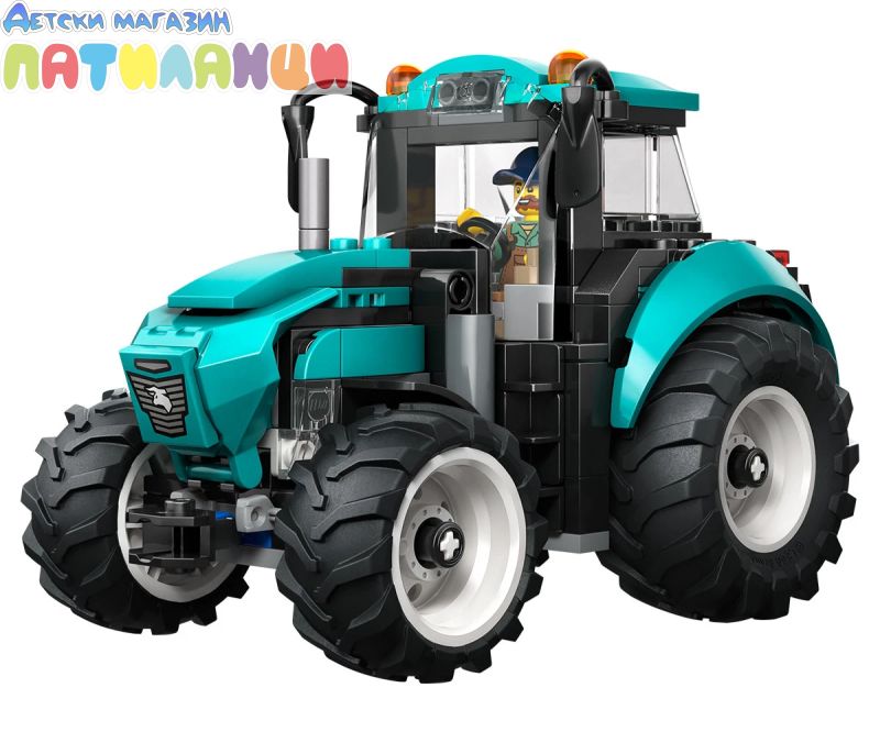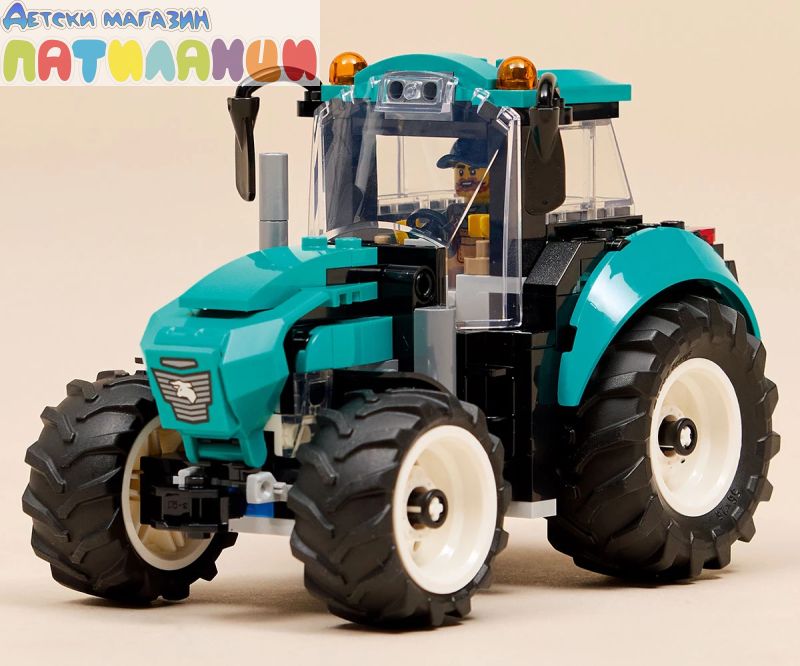 Развийте въображението на децата с този комплект за конструиране на трактор-играчка от LEGO® City (60498) за деца на възраст от 6 години. Тази детайлна играчка селскостопански трактор се предлага в свежа синьозелена цветна гама и с 4 големи гуми на трактора. Младите строители могат да свалят покрива на кабината, за да поставят минифигурата на фермата, и да отворят капака, за да разгледат двигателя, преди да се отправят на вълнуващите приключения на полето. Този сглобяем трактор LEGO City е чудесен подарък за рожден ден или празник за 6-годишните момчета, момичета и деца, които обичат селскостопанските превозни средства-играчки и практическата игра с въображение. Добавете този комплект за сглобяване на трактор към другите комплекти от серията LEGO® City (продава се отделно) за още по-големи приключения във фермата. Децата могат да се насладят на подобрено конструиране с приложението LEGO Builder, да увредят и завъртят с 3D инструкции, като същевременно запазите и следите напредъка си. Тръгнете към полето със селскостопанския трактор на LEGO® City. Тази страхотна селскостопанска машина се предлага в чудесна синьозелена цветова схема и с кабина с висока видимост. Вижте големи, плътни гуми за допълнително сцепление и мощност. Качвайте се на борда и се търкайте лесно по неравен терен. Очакват ви фантастични приключения във фермата в LEGO City!