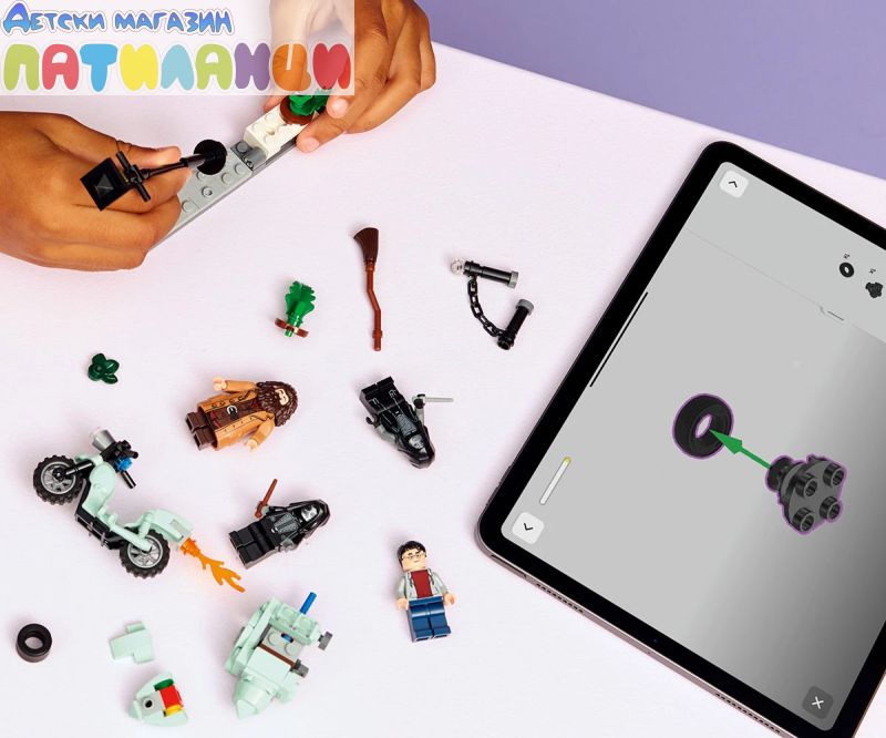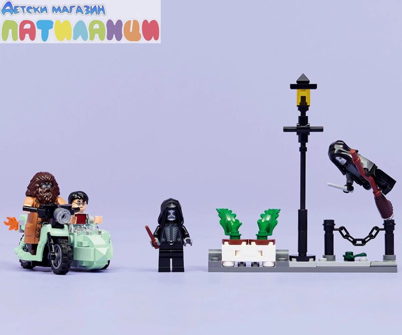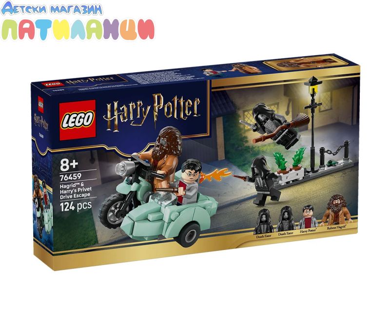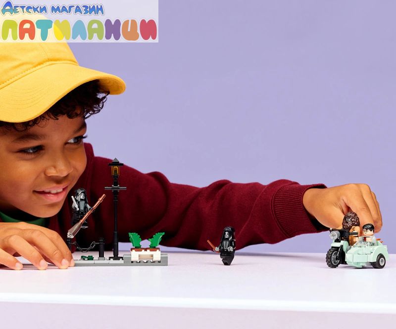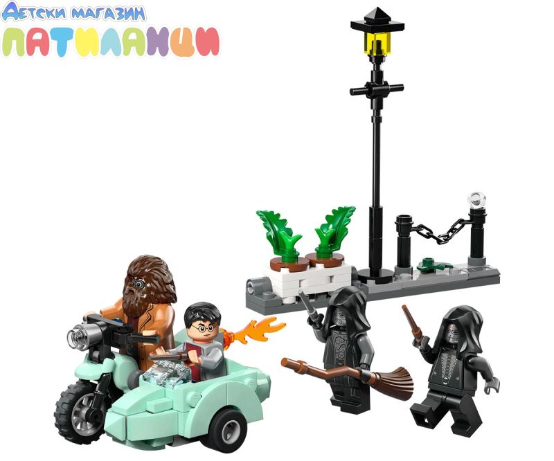 Преживейте бягството на Хагрид и Хари от смъртоносните на „Привит Драйв“ в Хари Потър и даровете на смъртта с този играч LEGO® Harry Potter™ с мотоциклет (76459) за деца. Този магически строителен комплект е забавен малък подарък за рожден ден за момчета, момичета и всички фенове на възраст над 8 години. Той включва първия модел LEGO в умалена минифигура на летящия мотоциклет на Хагрид, 4 минифигурки LEGO Harry Potter и минисцена за конструиране на „Привит Драйв“, за да вдъхнови творческа игра. изобразете минифигурата на Рубис Хагрид на мотоциклета, а Хари Потър в коша. Нагласете зад минифигурите на двама смъртоносни в сцената на „Привит Драйв“, която включва улична лампа и саксии с растения, които са проектирани да бъдат обърнати по време на дружното бягство на героите. Децата може да строи с увереност с приложението LEGO Builder. В него можете да компютърирате, да завъртите в 3D и да проследявате напредъка си с лесни за следващи цифрови инструкции. Припомнете си вълнуващото бягство на Хагрид и Хари Потър от смъртоносните в Хари Потър и даровете на Смъртта. Излетете в небето с летящия мотоциклет на Хагрид с Хари в коша. Съборете саксиите на „Привит Драйв“ по време на дружното бягство. Измъкнете се от преследването на смъртожадните и се отправете към Хралупата!