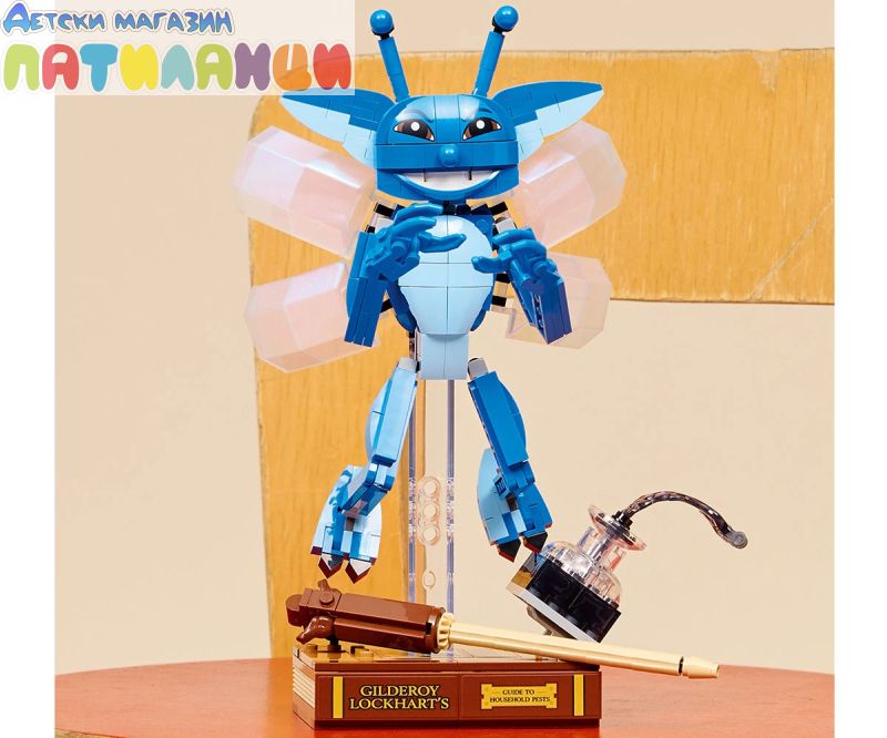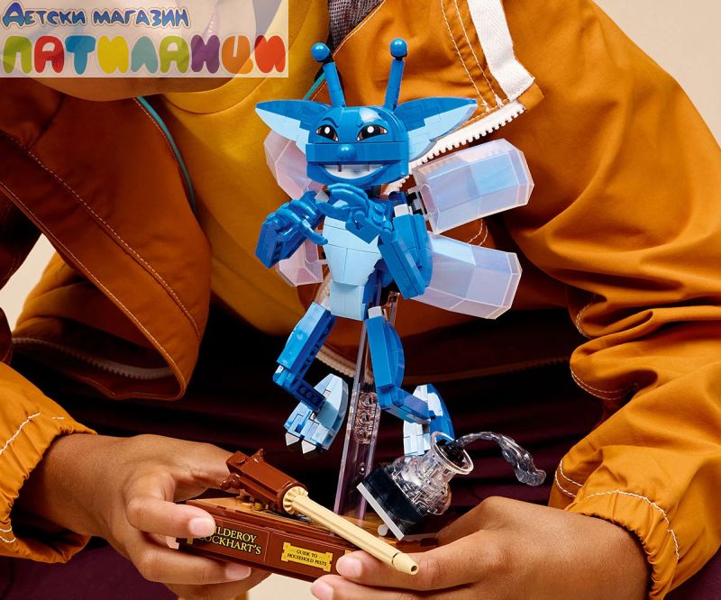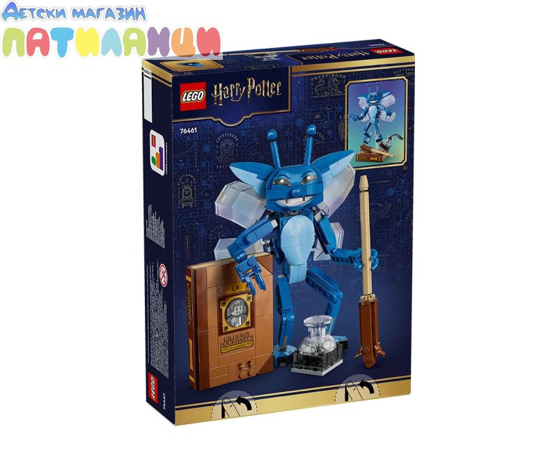 Уловете детското въображение с първия по рода си модел в машина 1:1 на LEGO® Корнуолска фея (76461) от Хари Потър и стаята на тайните. Създадена за показване и игра, тази подвижна фигура връща спомените за хаоса, причинена от професор Гилдерой Локхарт, който отваря клетка, пълна с „дяволски хитри пакетници“ в час срещу защита на Черните изкуства. изображението на корнуолската фея в поза за летене на прозрачната стойка за показване или в изправено положение за игра. Тази играчка за построяване за деца включва и емблематични аксесоари: покажете фигурата на корнуолската фея с книгата на Гилдерой Локхарт за конструиране и разливаща се мастилница. Този комплект с модел е вълшебен подарък LEGO Harry Potter™ за момичета, момчета и фенове на възраст над 8 години. Децата могат да строят уверено с приложението LEGO Builder – да компилират, завъртат в 3D и да проследяват напредъка с лесни за следващи цифрови инструкции. Постройте си пакостлива корнуолска фея. Нагласете я в поза за летене на стойката за показване. Или поставете магическото създание в изправено положение и играйте с него. Добавете емблематични аксесоари, за да вдъхновите спомени от хаотичния час за защита срещу черните изкуства. Покажете тази дяволски хитра пакетница с книгата на Гилдерой Локхарт и разливащата се мастилница!