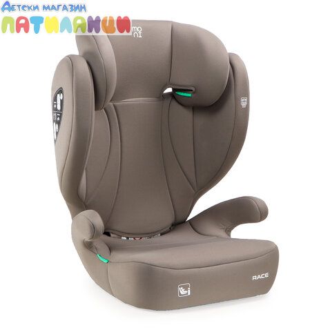 Столът за кола Race от Moni е предназначен за деца с височина от 100 до 150 см и е разработен съгласно най-новия стандарт за безопасност R129/i-Size. Създаден да расте заедно с детето, той предлага сигурност, функционалност и лесна трансформация от стол с облегалка в повдигаща седалка.
