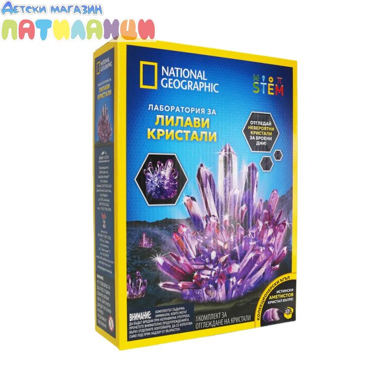 Открийте магията на науката с Лаборатория за лилави кристали от National Geographic! Този образователен комплект позволява на децата сами да отгледат красиви лилави кристали и да наблюдават как те растат за няколко дни, докато се запознават с основни принципи от химията и геологията.